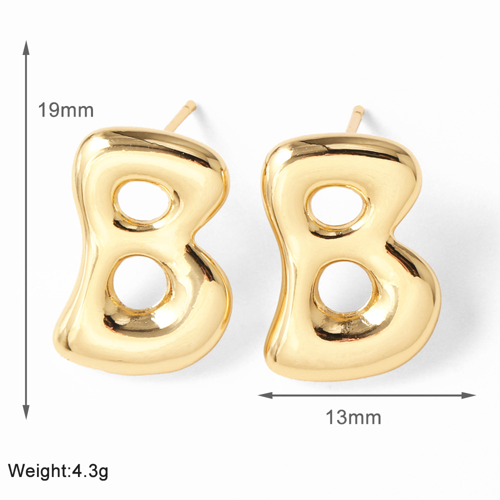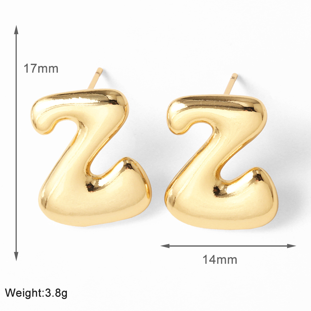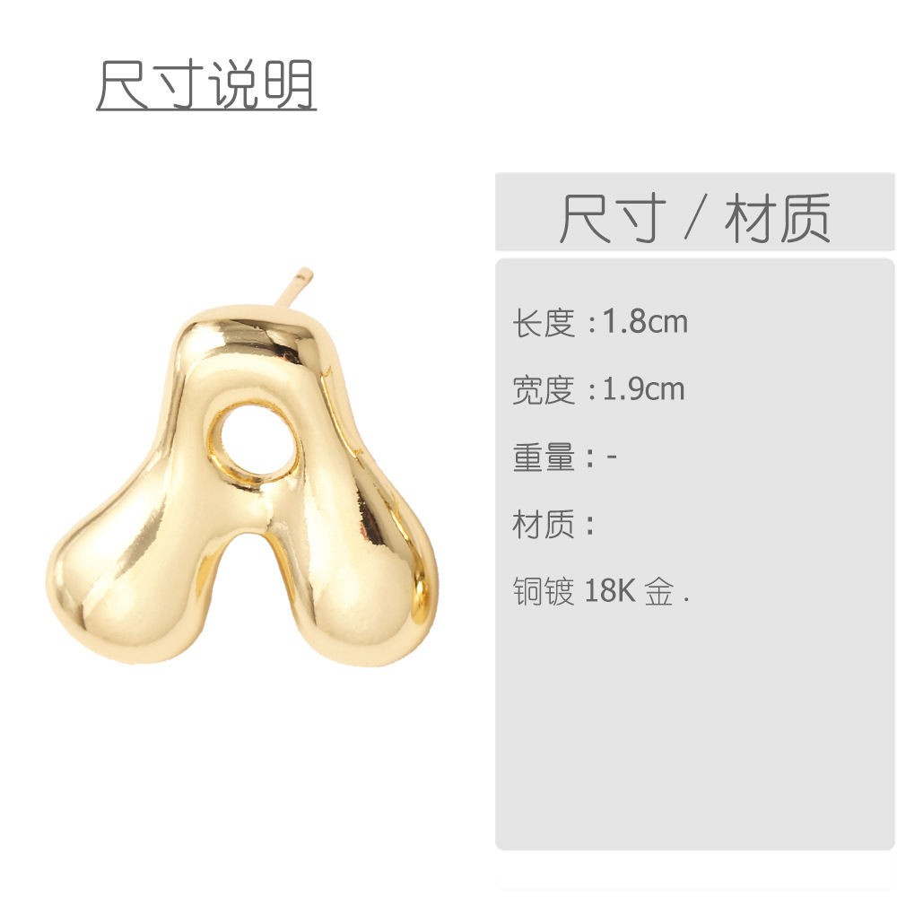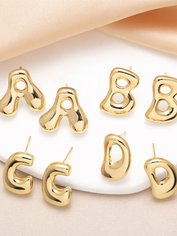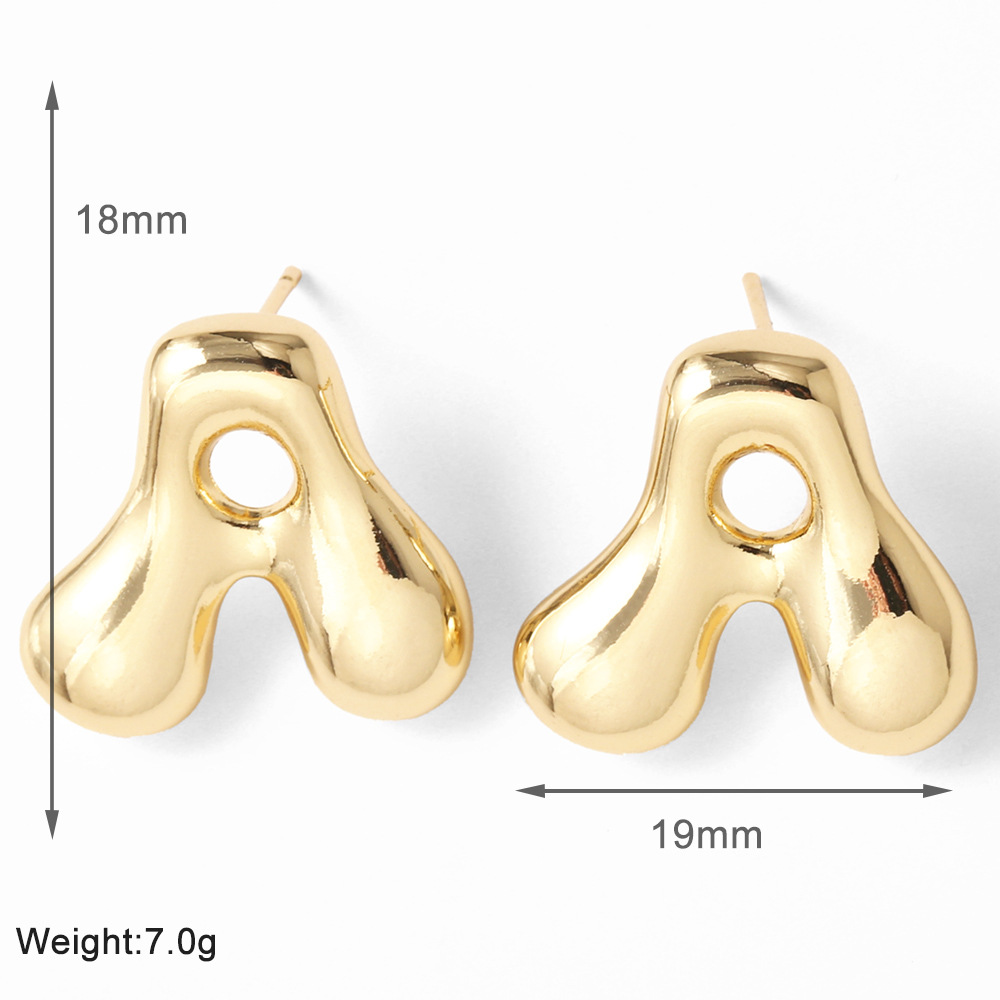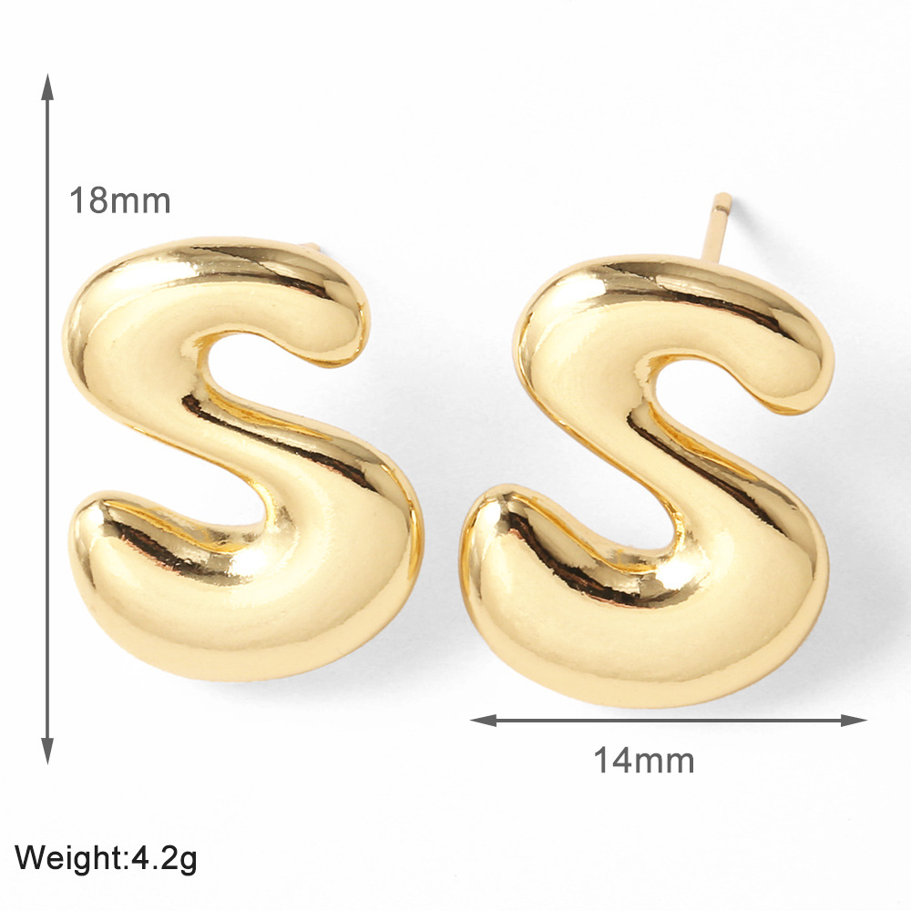 AS jewelry hot-selling 26 English letter earrings copper plated with real gold fat letter earrings erz43