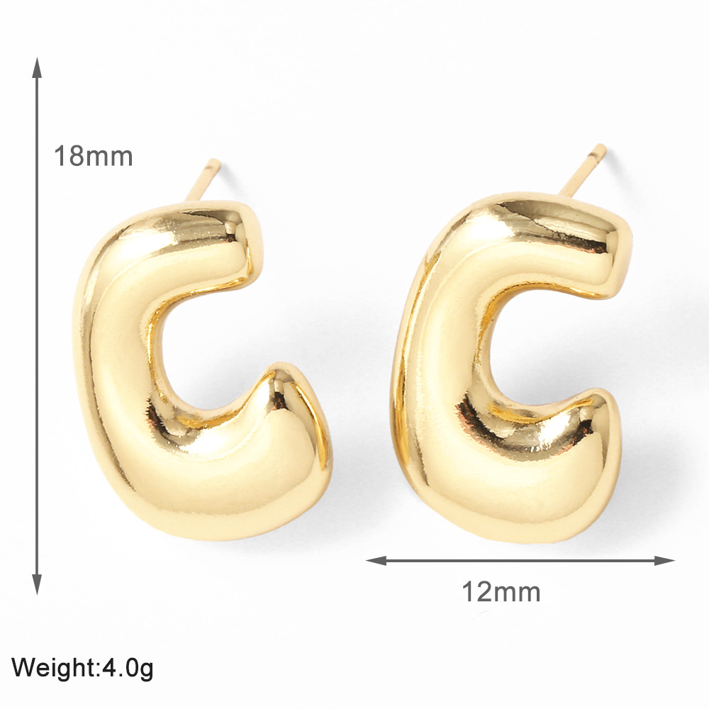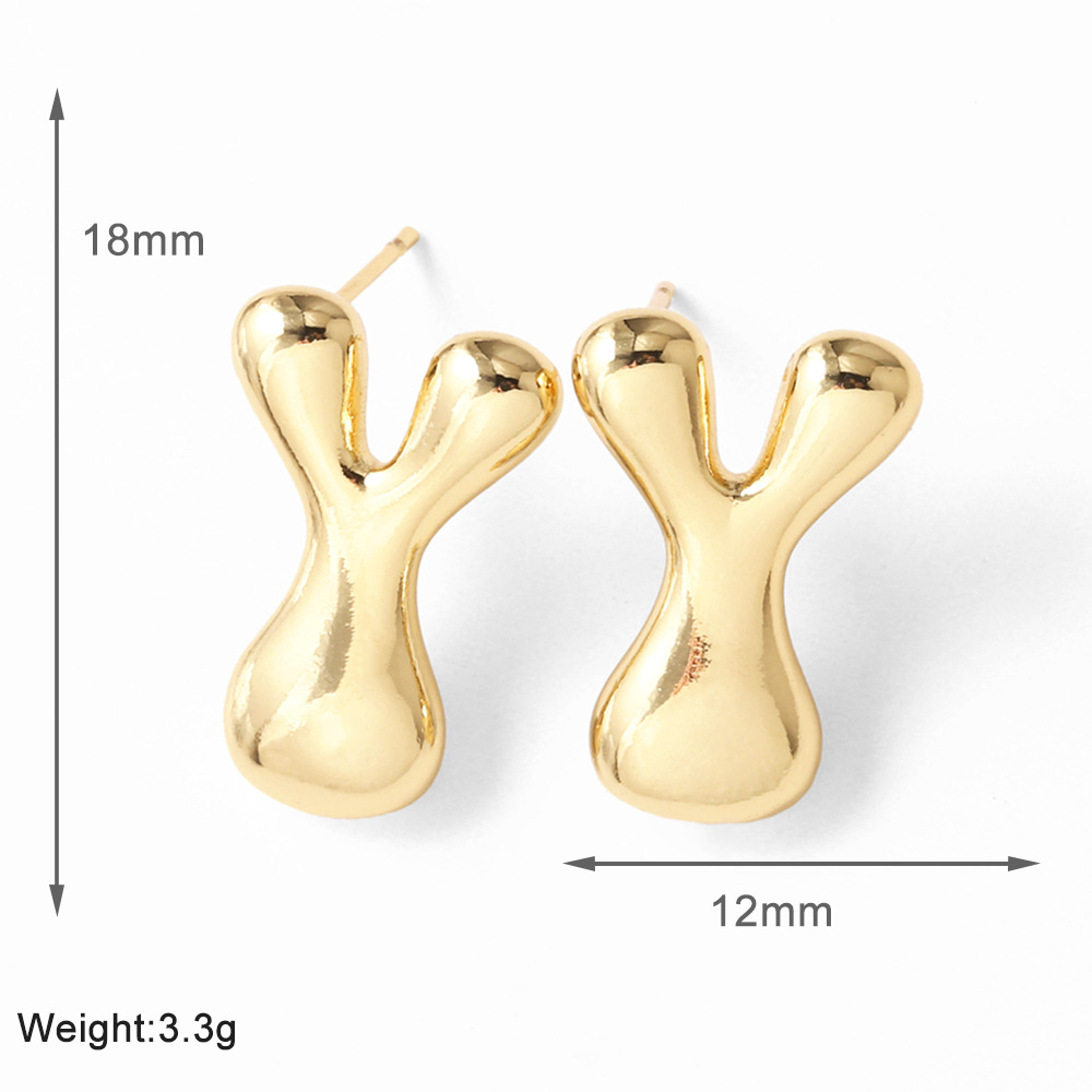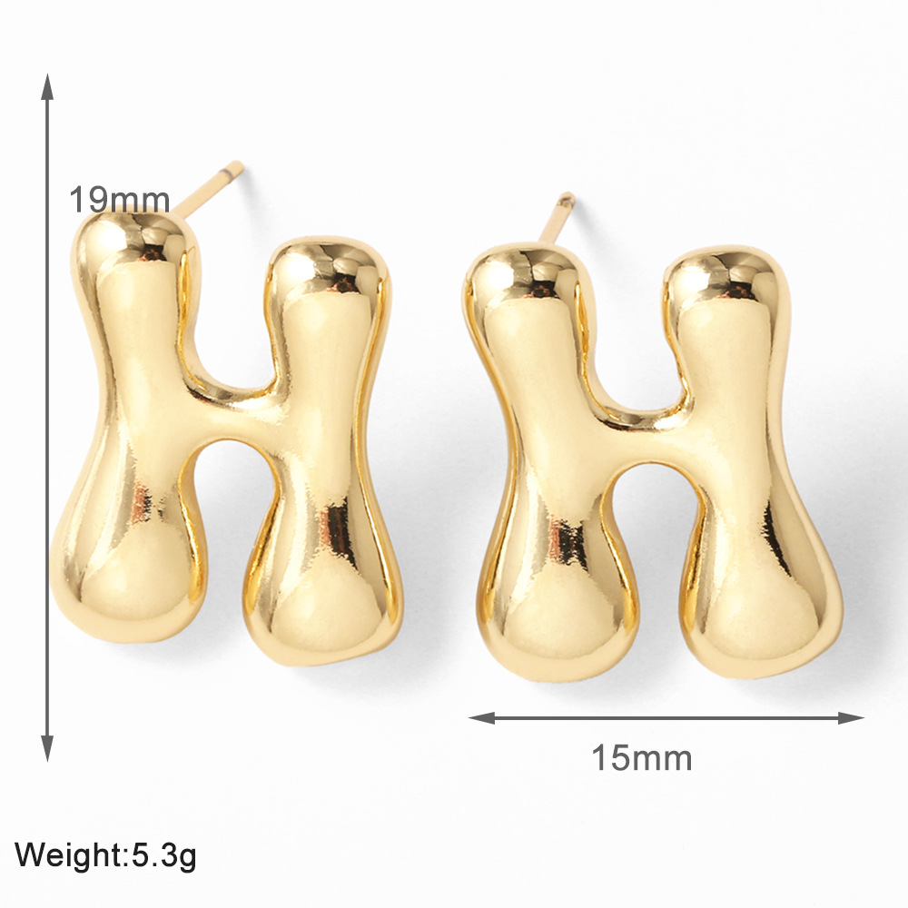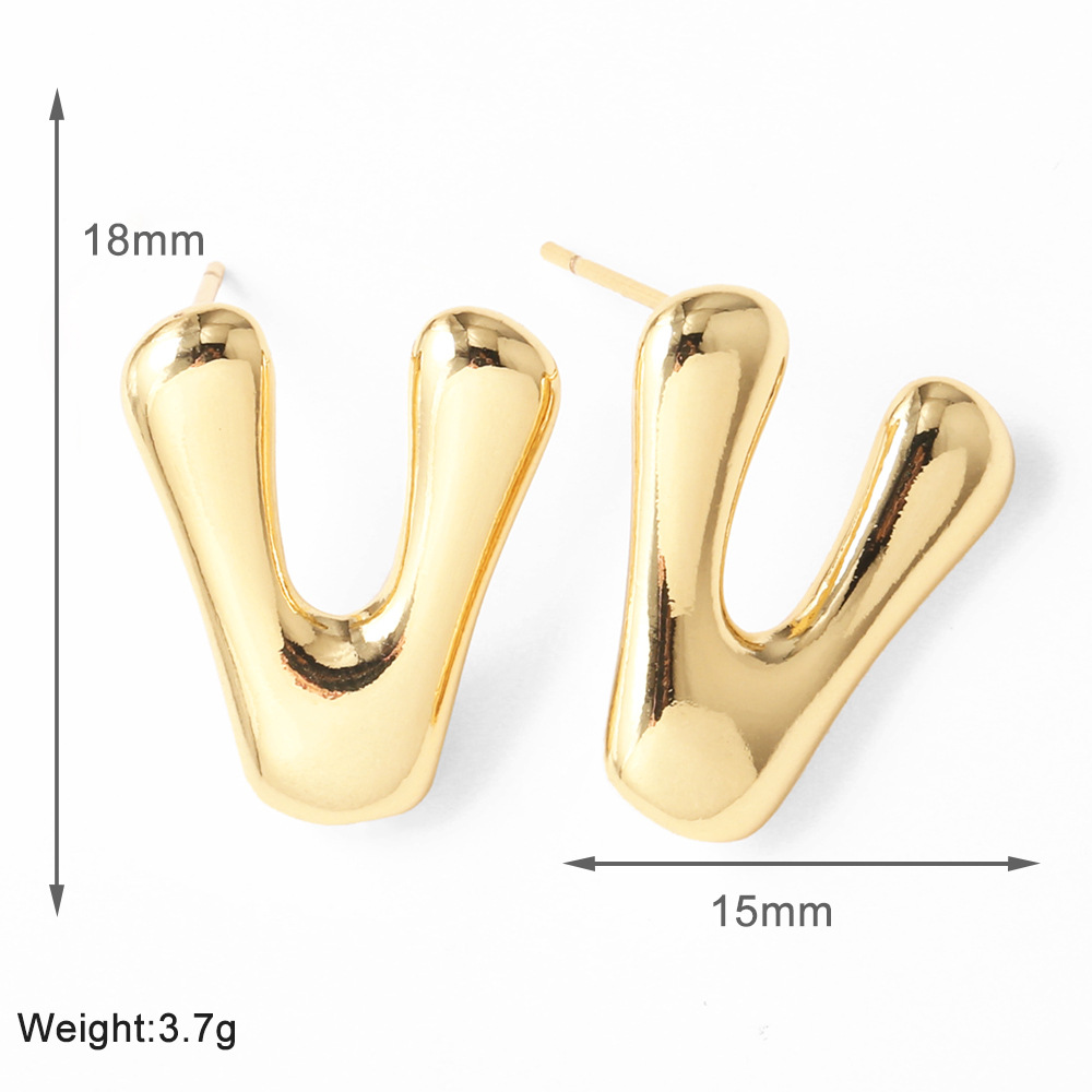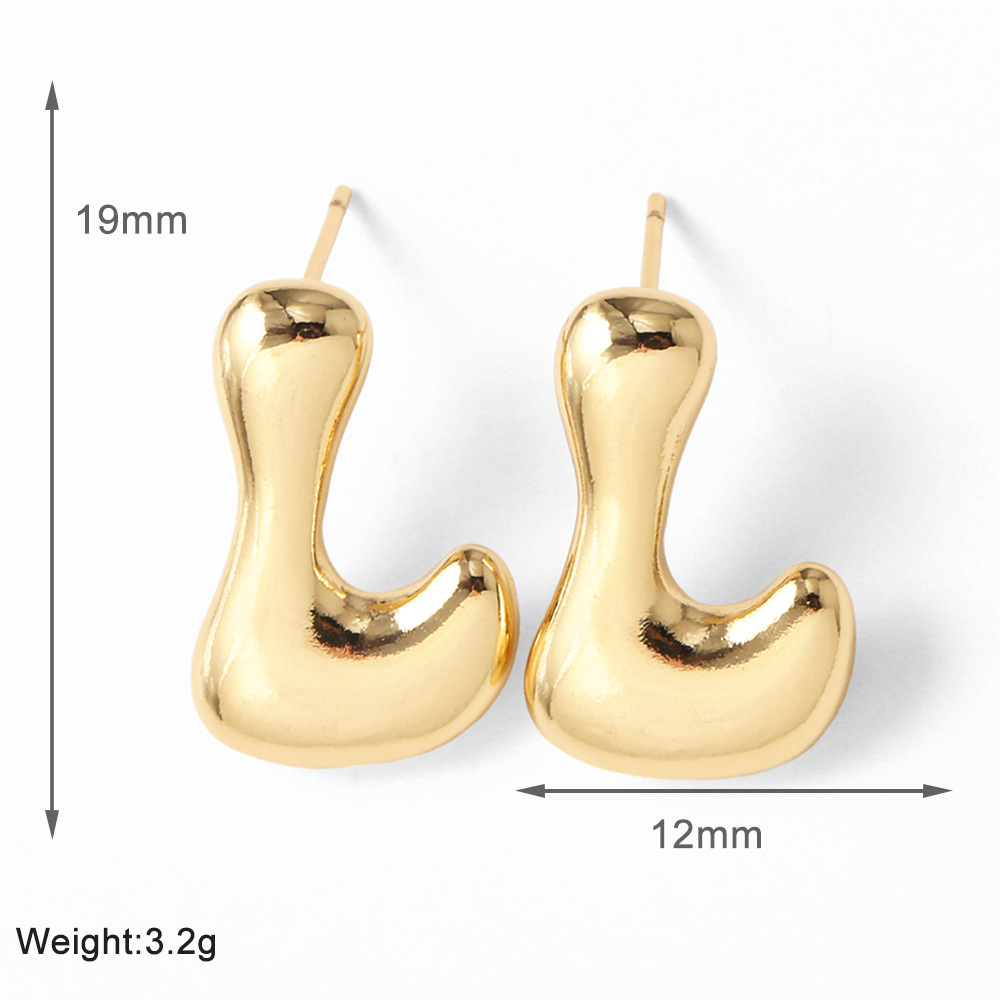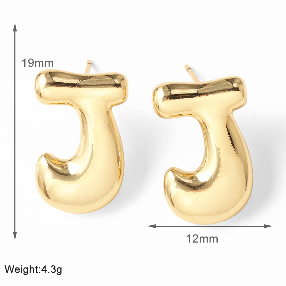 AS jewelry hot-selling 26 English letter earrings copper plated with real gold fat letter earrings erz43