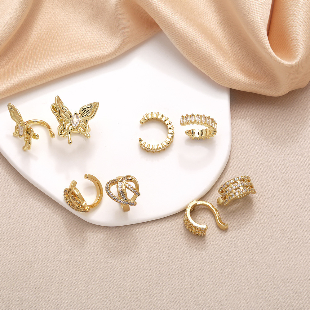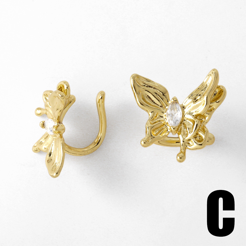 AS jewelry hot selling animal butterfly earrings female copper plated real gold C-shaped ear bone clip earrings ery81