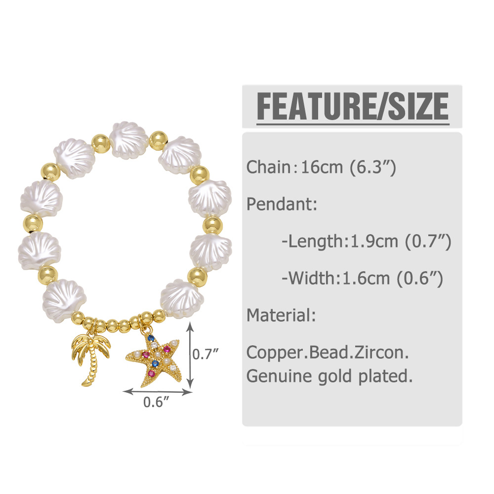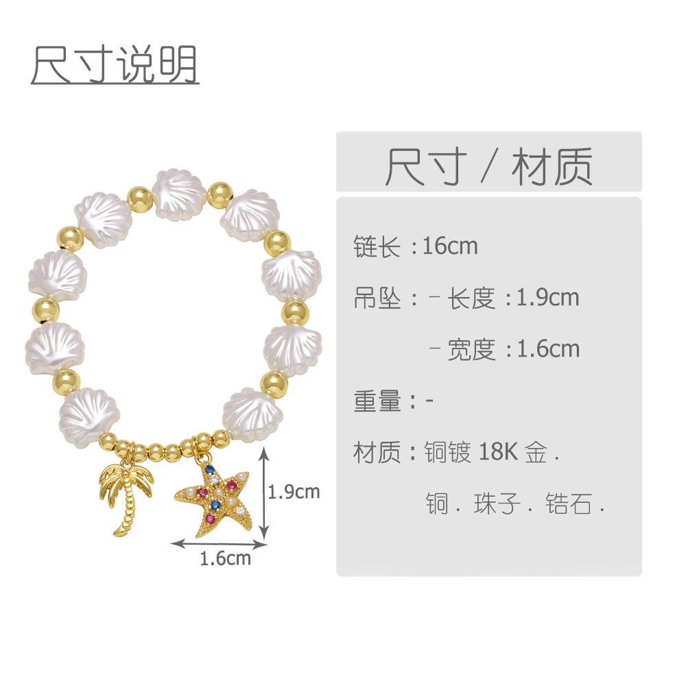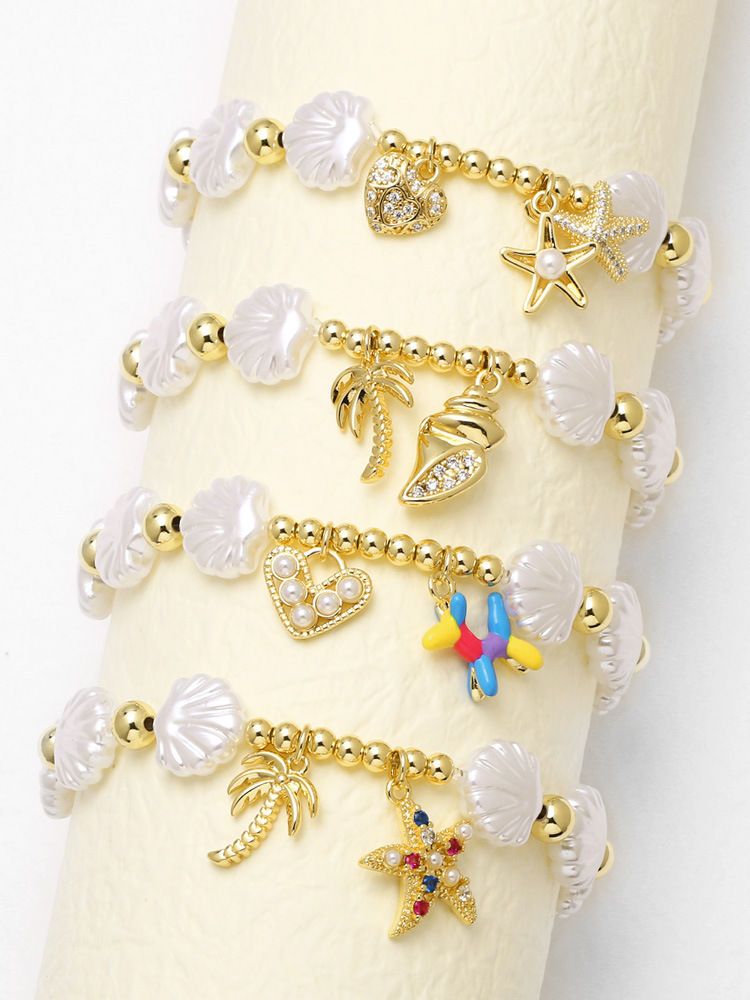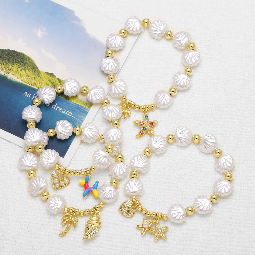 AS jewelry hot selling beaded shell heart starfish pendant gold-plated bracelet hand jewelry brf75