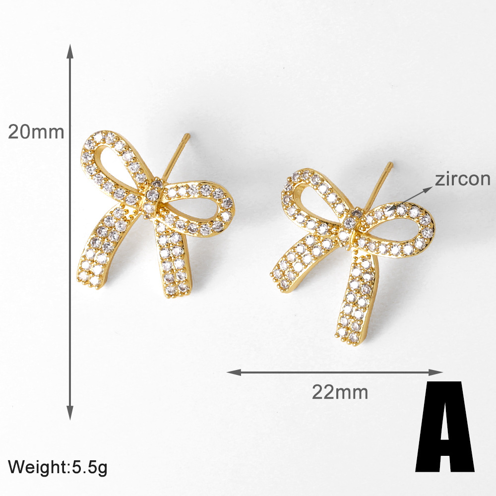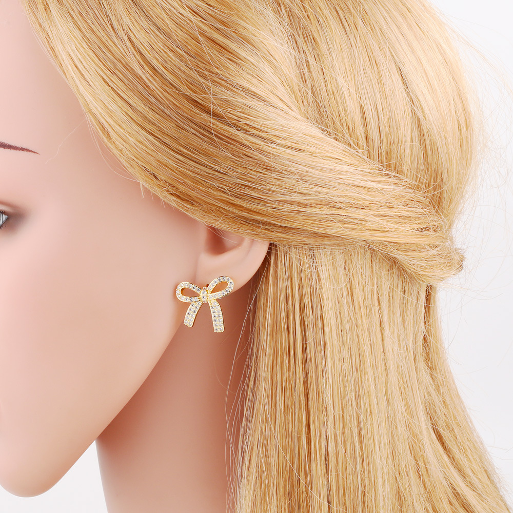 AS jewelry hot selling bow earrings copper plated real gold inlaid zircon earrings erw03