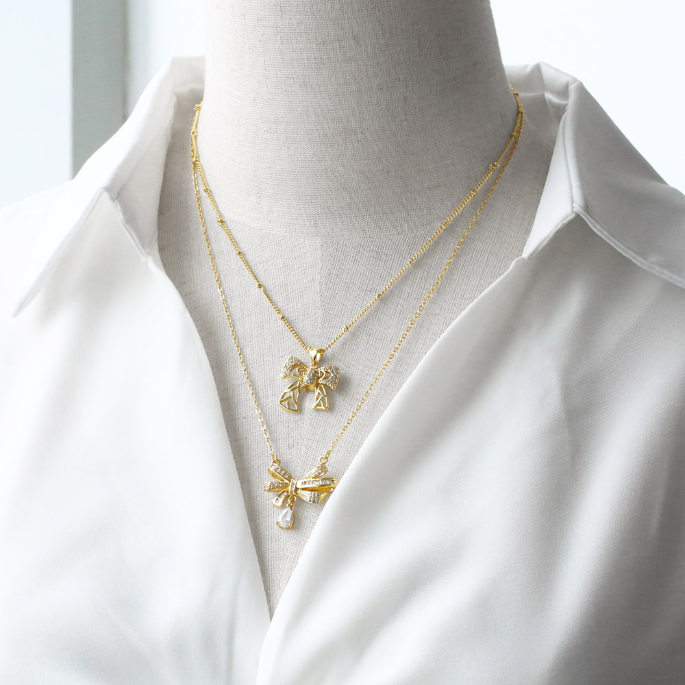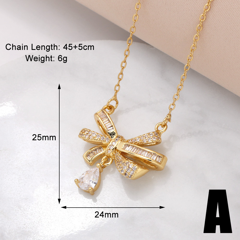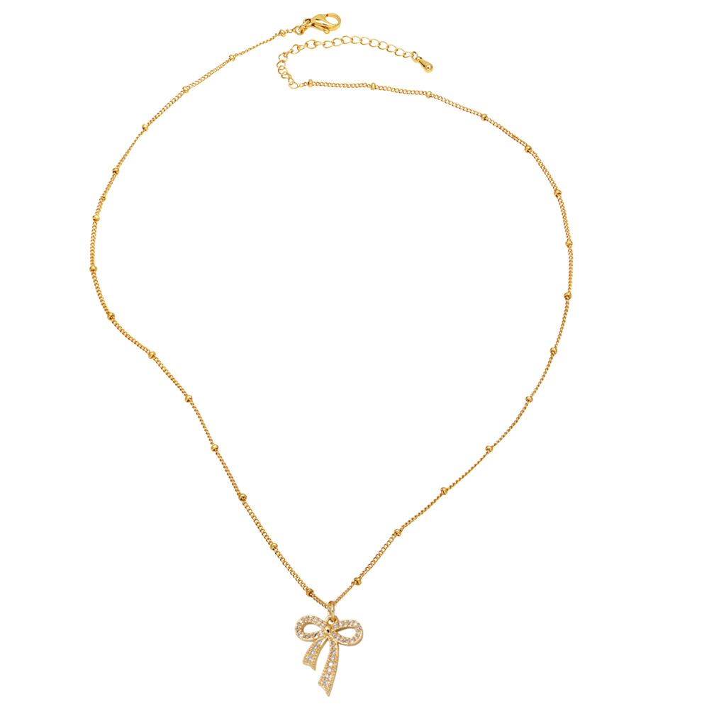 AS jewelry hot selling bow pendant necklace copper plated real gold inlaid zircon clavicle chain nku21