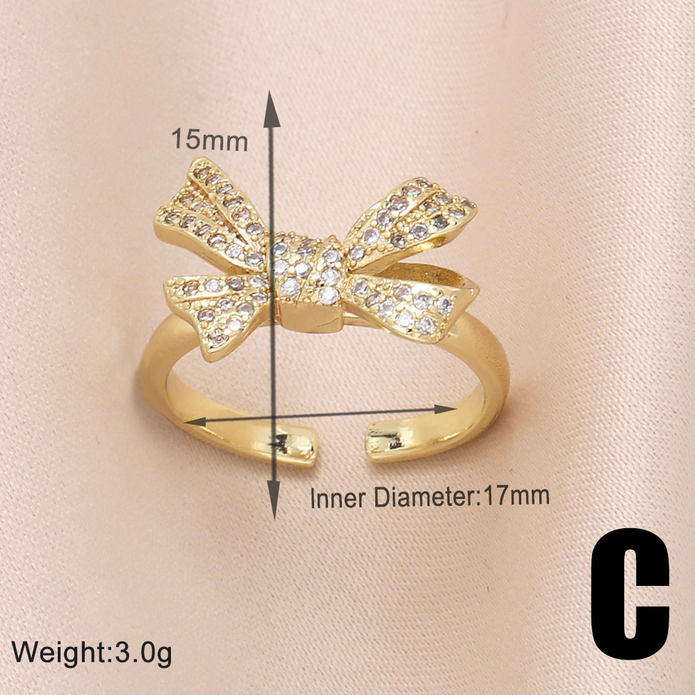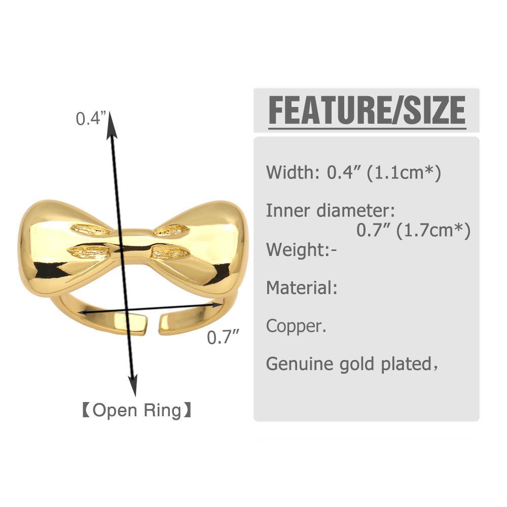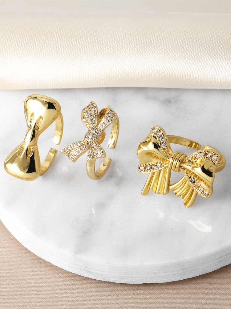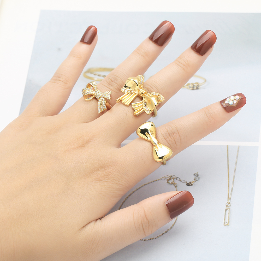 AS jewelry hot selling bow ring female copper plated real gold inlaid zircon smooth open ring rin25