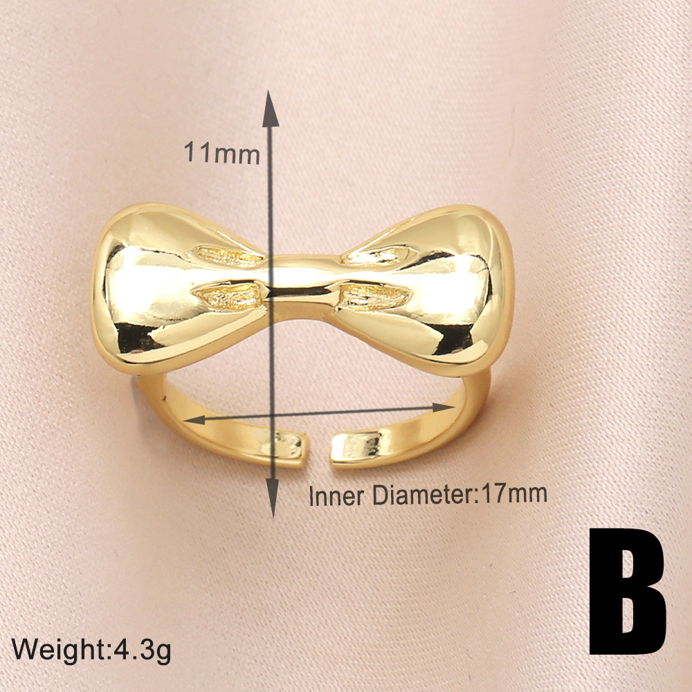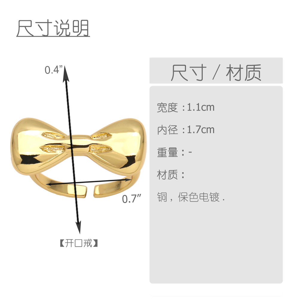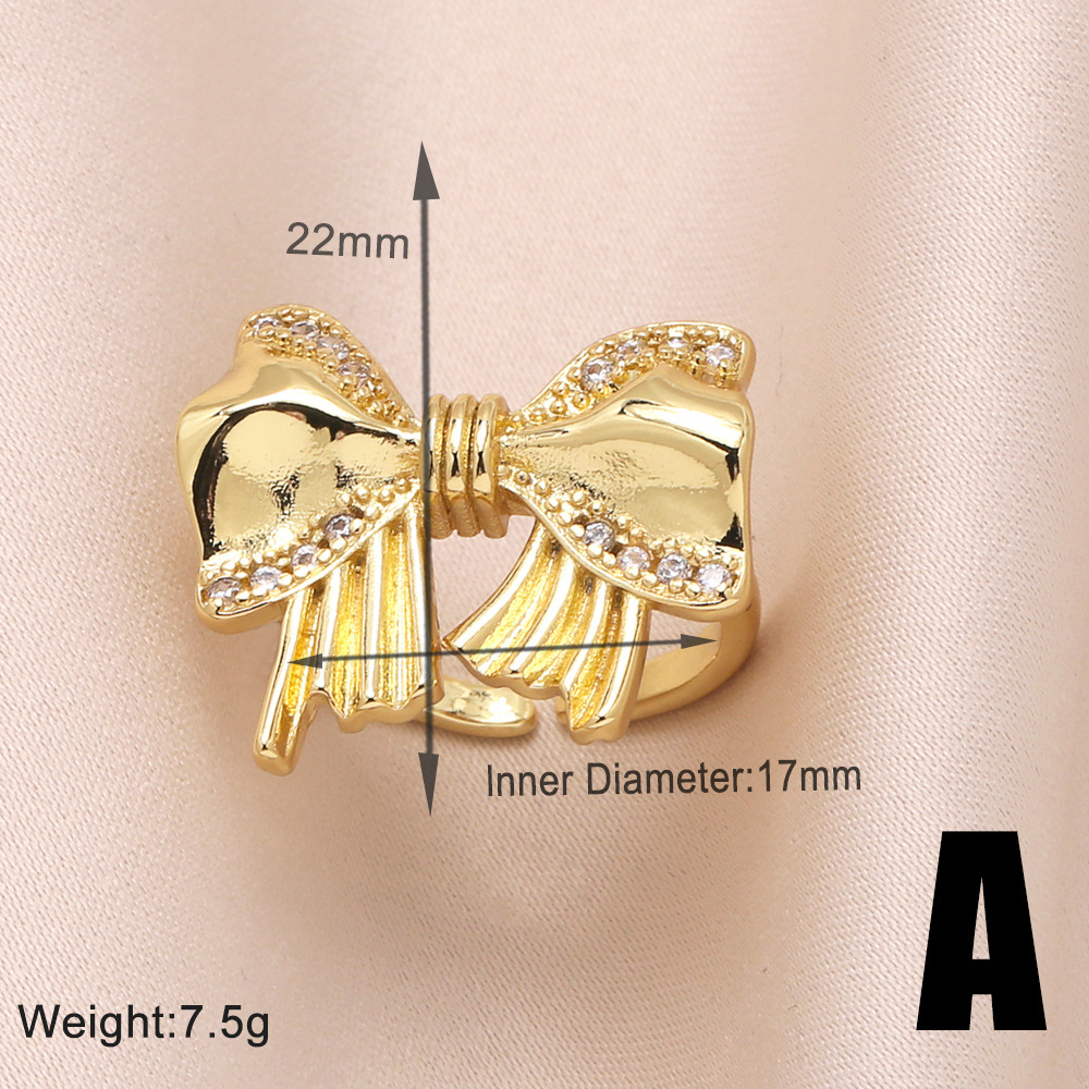 AS jewelry hot selling bow ring female copper plated real gold inlaid zircon smooth open ring rin25