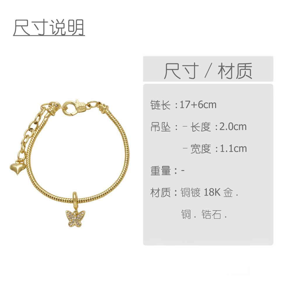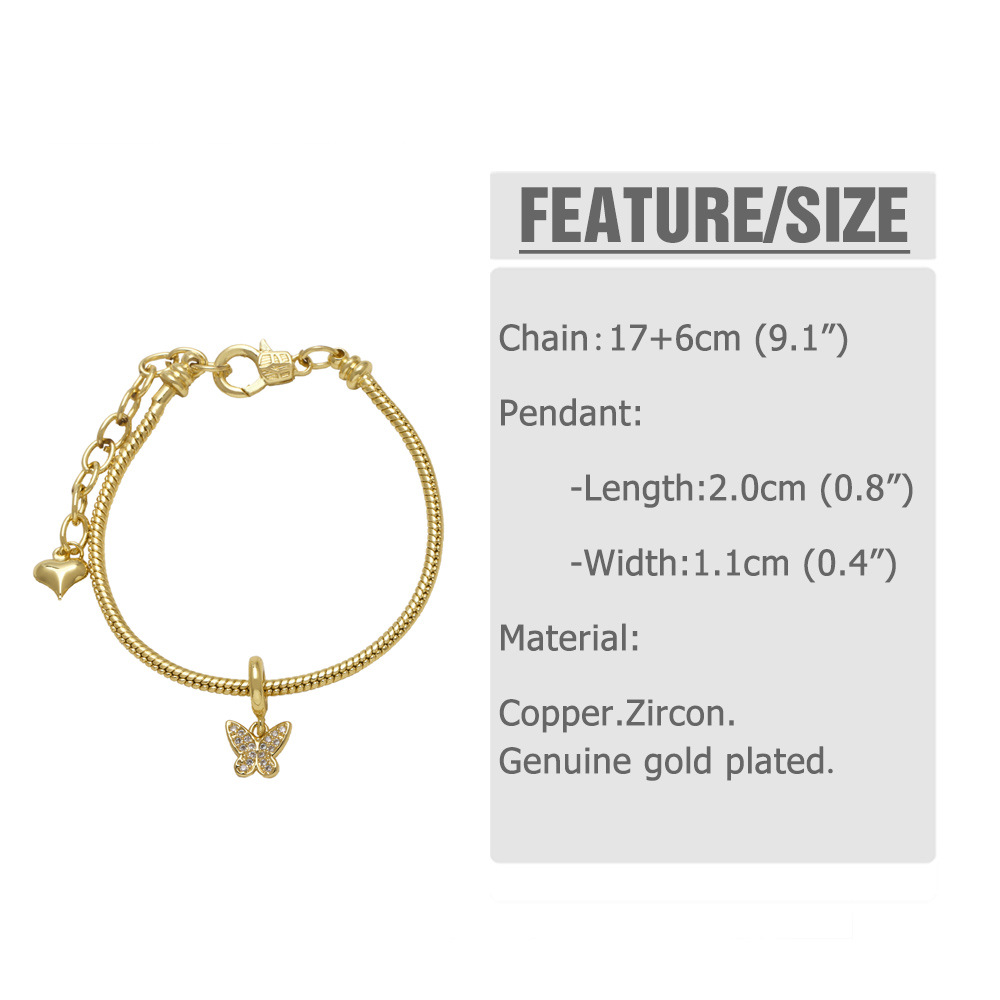 AS jewelry hot selling butterfly girl bracelet DIY copper plated 18k gold bracelet hand jewelry female brm91