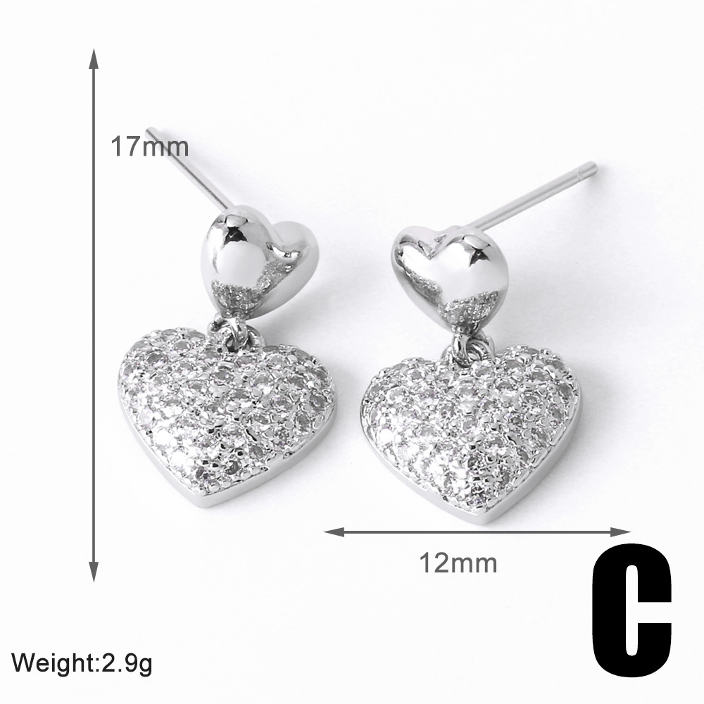AS jewelry hot selling C-shaped earrings for women gold-plated full zircon love heart earrings era371