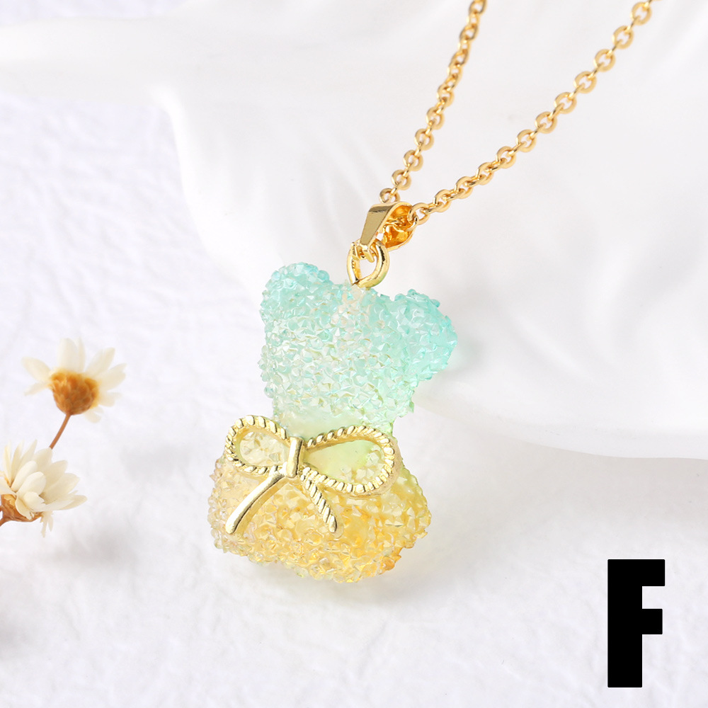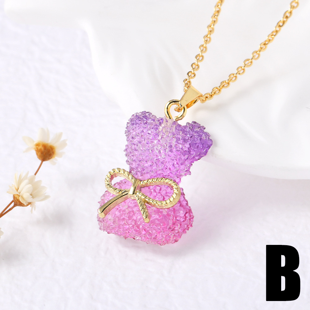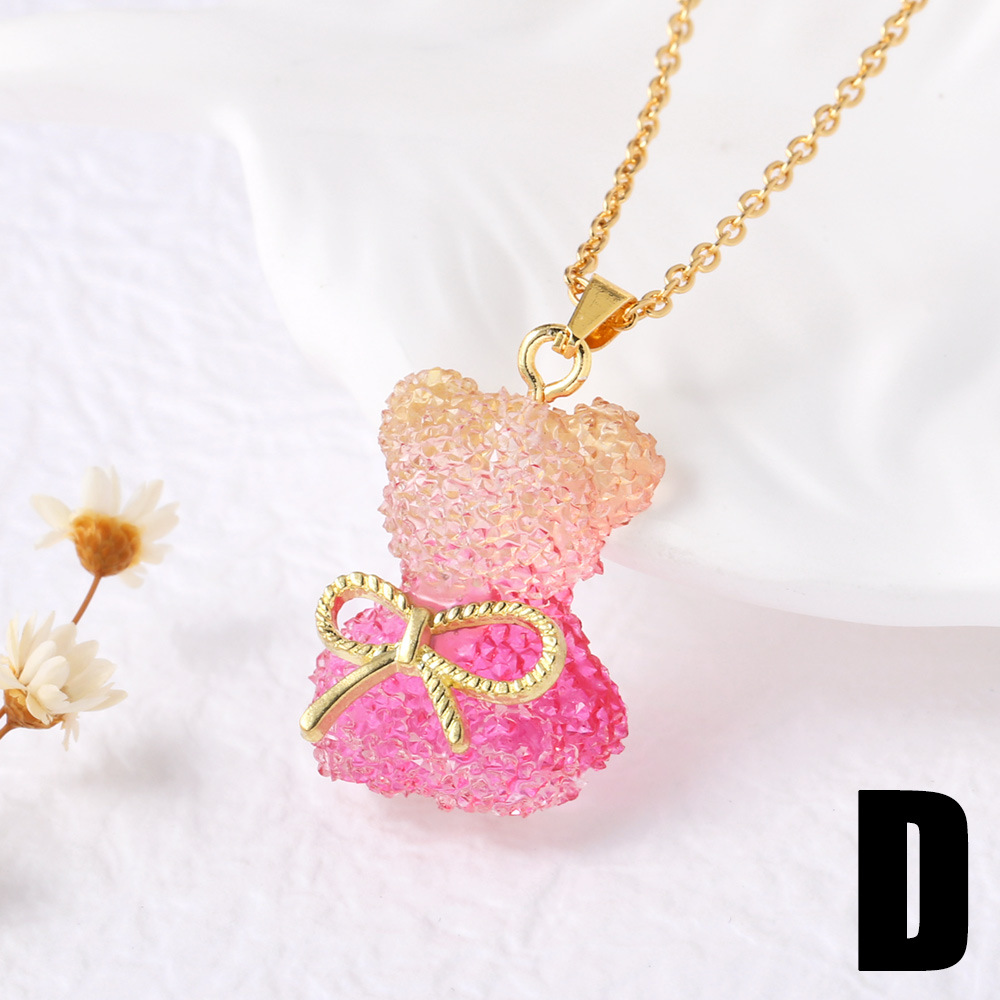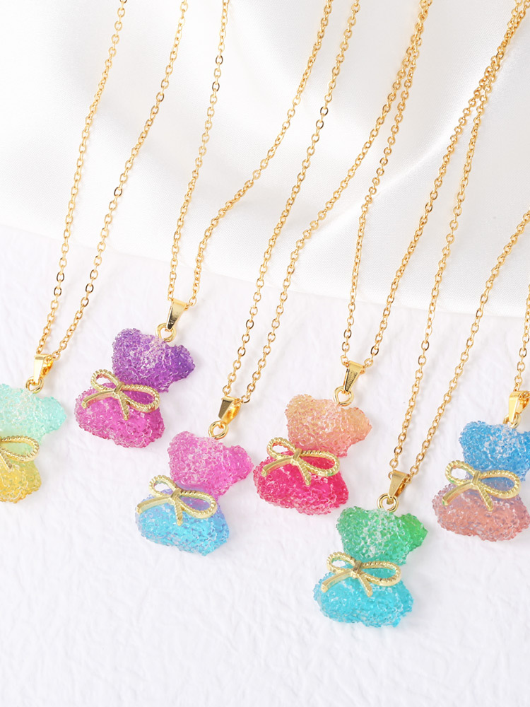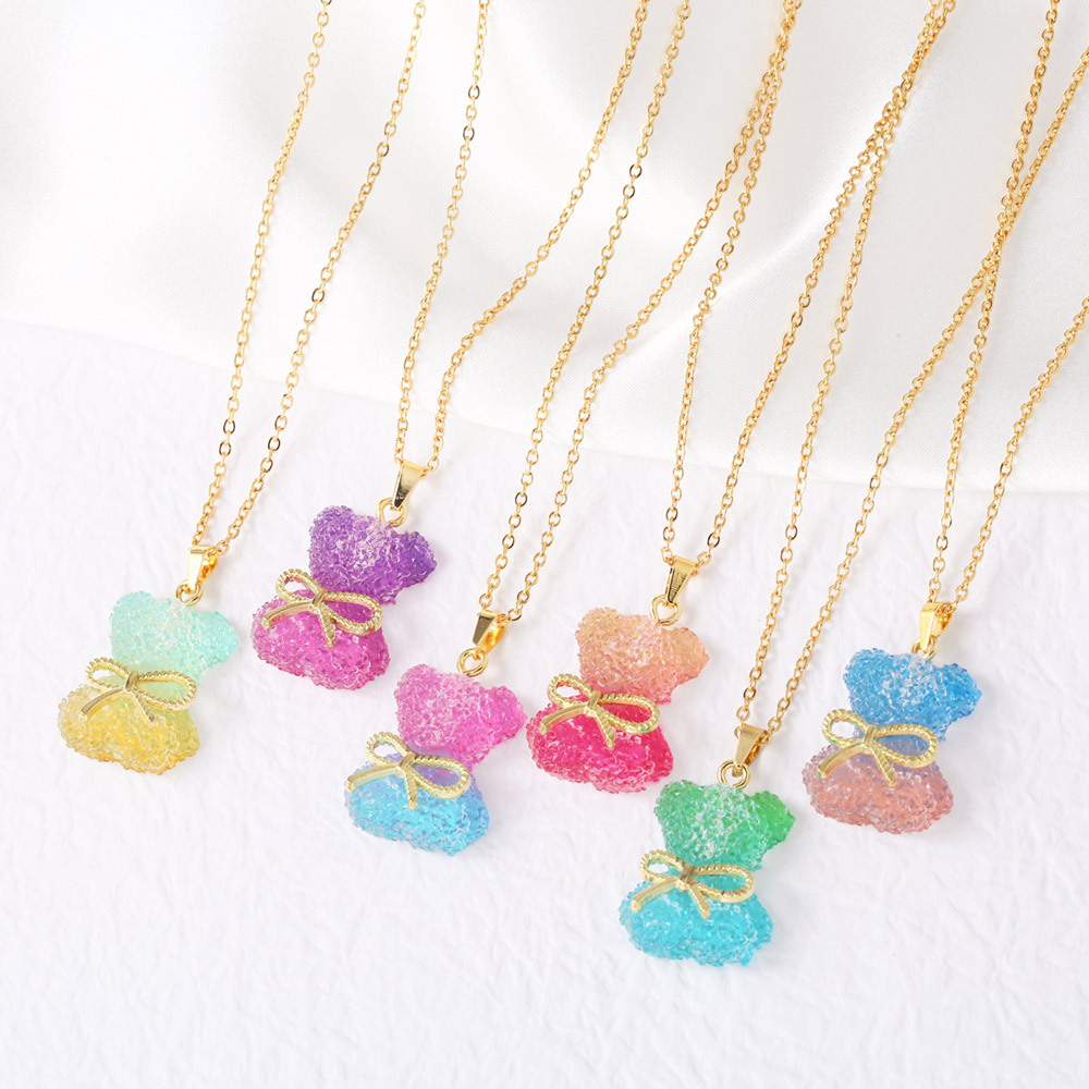 AS jewelry hot selling colorful bow bear pendant necklace female gold-plated clavicle chain nkw66