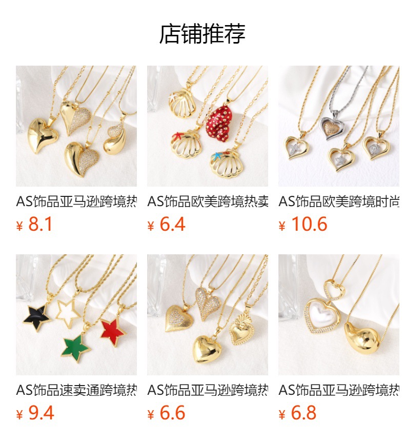 AS jewelry hot selling colorful love heart pendant gold-plated necklace clavicle chain female nkb423