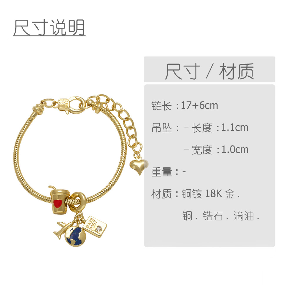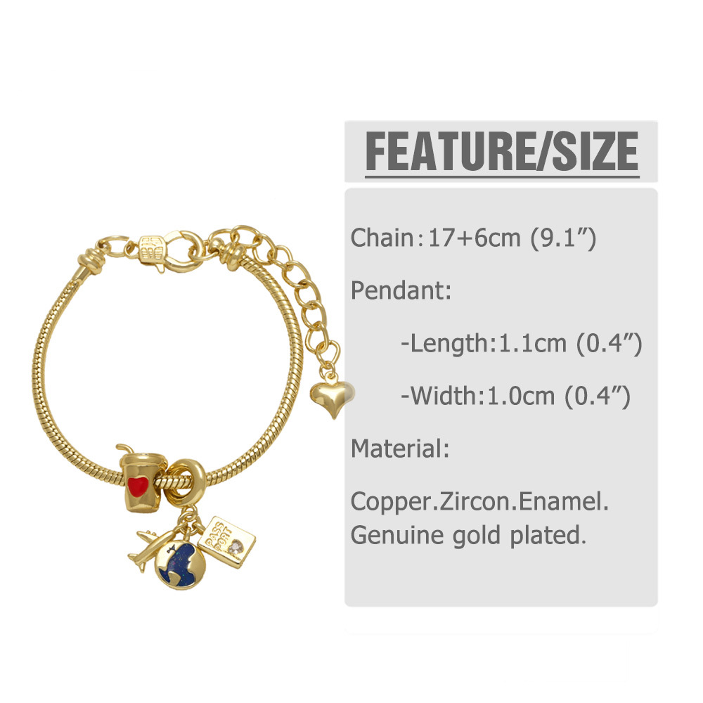 AS jewelry hot selling copper plated 18k gold airplane passport DIY pendant bracelet hand jewelry female brn06