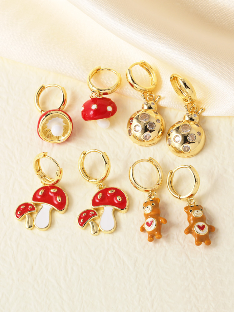 AS jewelry hot-selling copper plated 18k gold bear mushroom pendant earrings earrings female era182