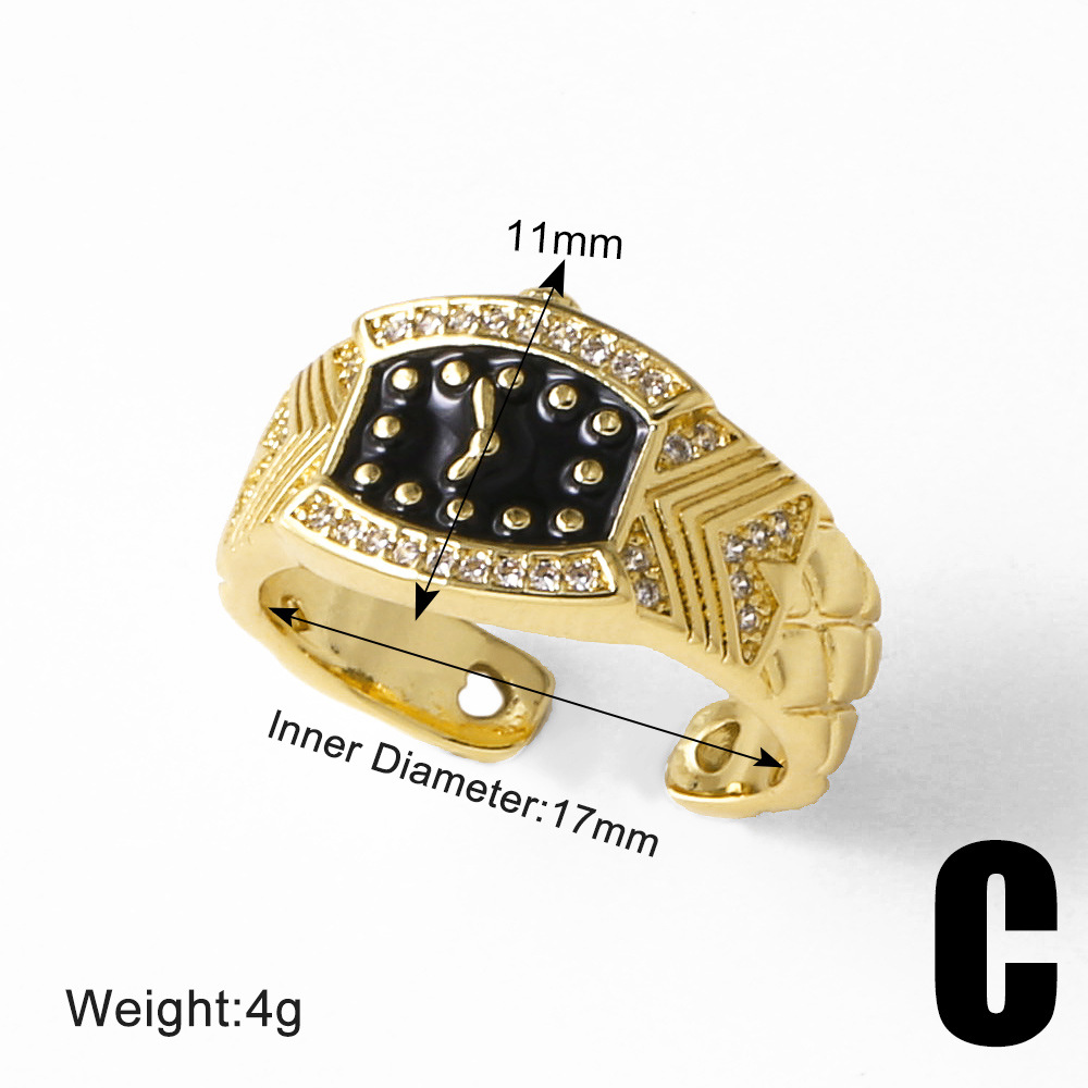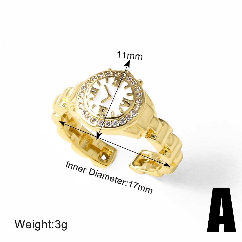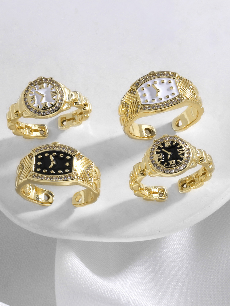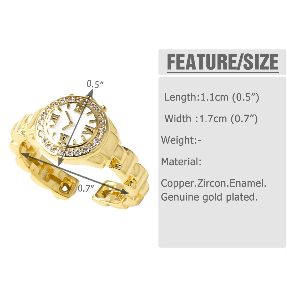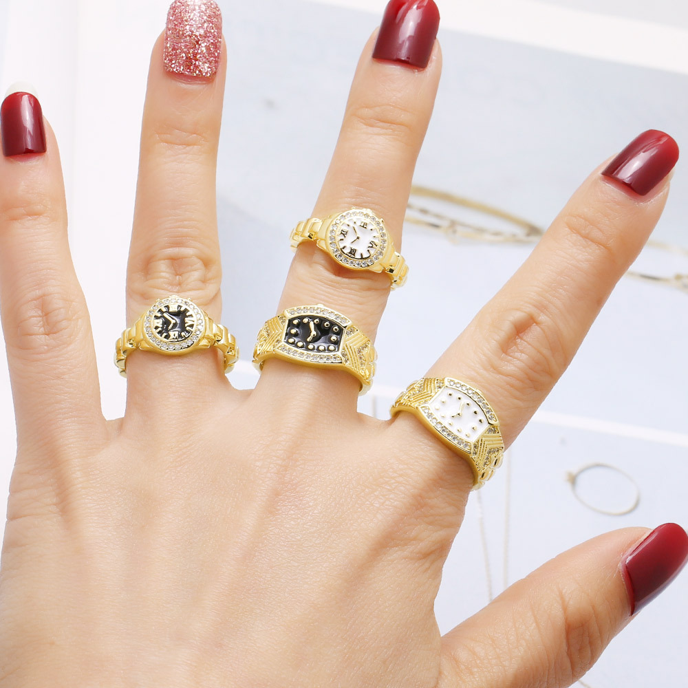AS jewelry hot selling copper plated 18k gold drop oil watch clock open ring ring female riq50