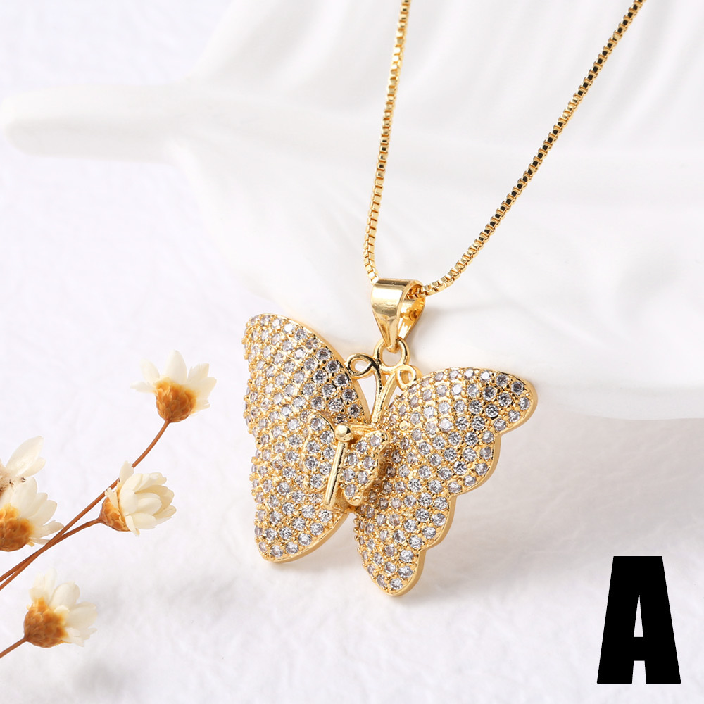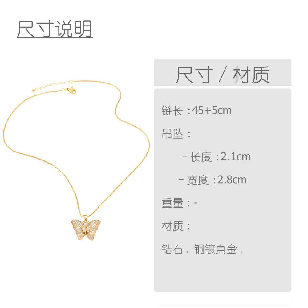 AS jewelry hot selling copper plated 18k gold full zircon butterfly insect pendant necklace nkb367 necklace