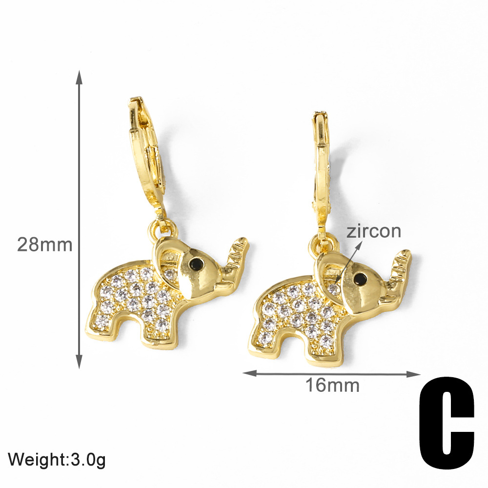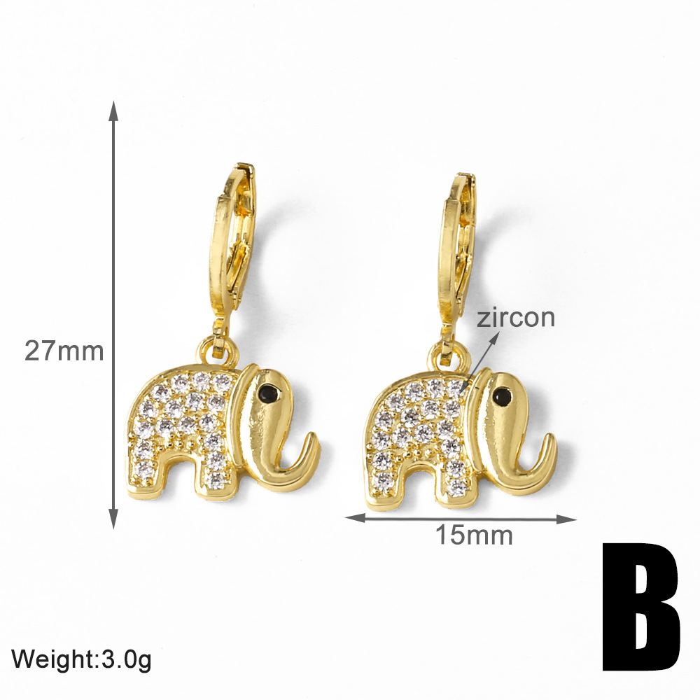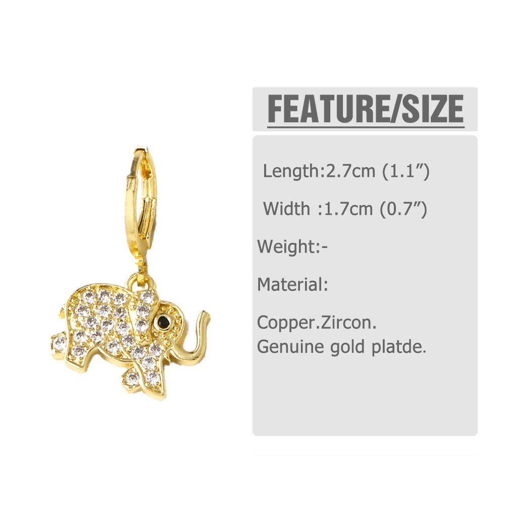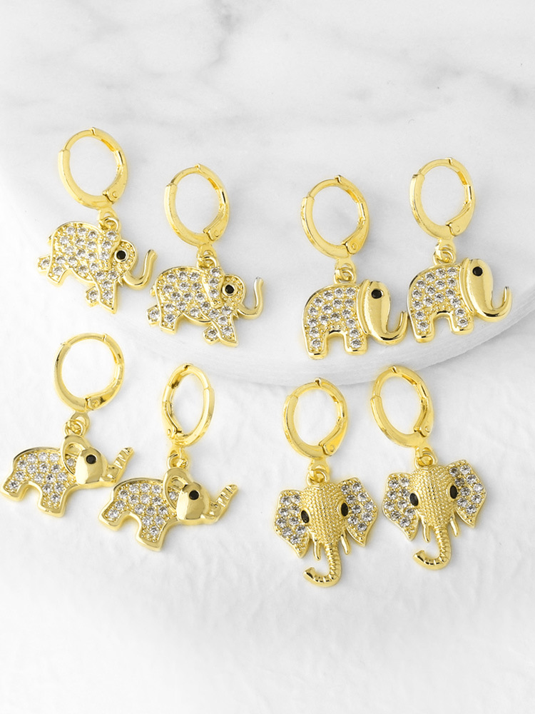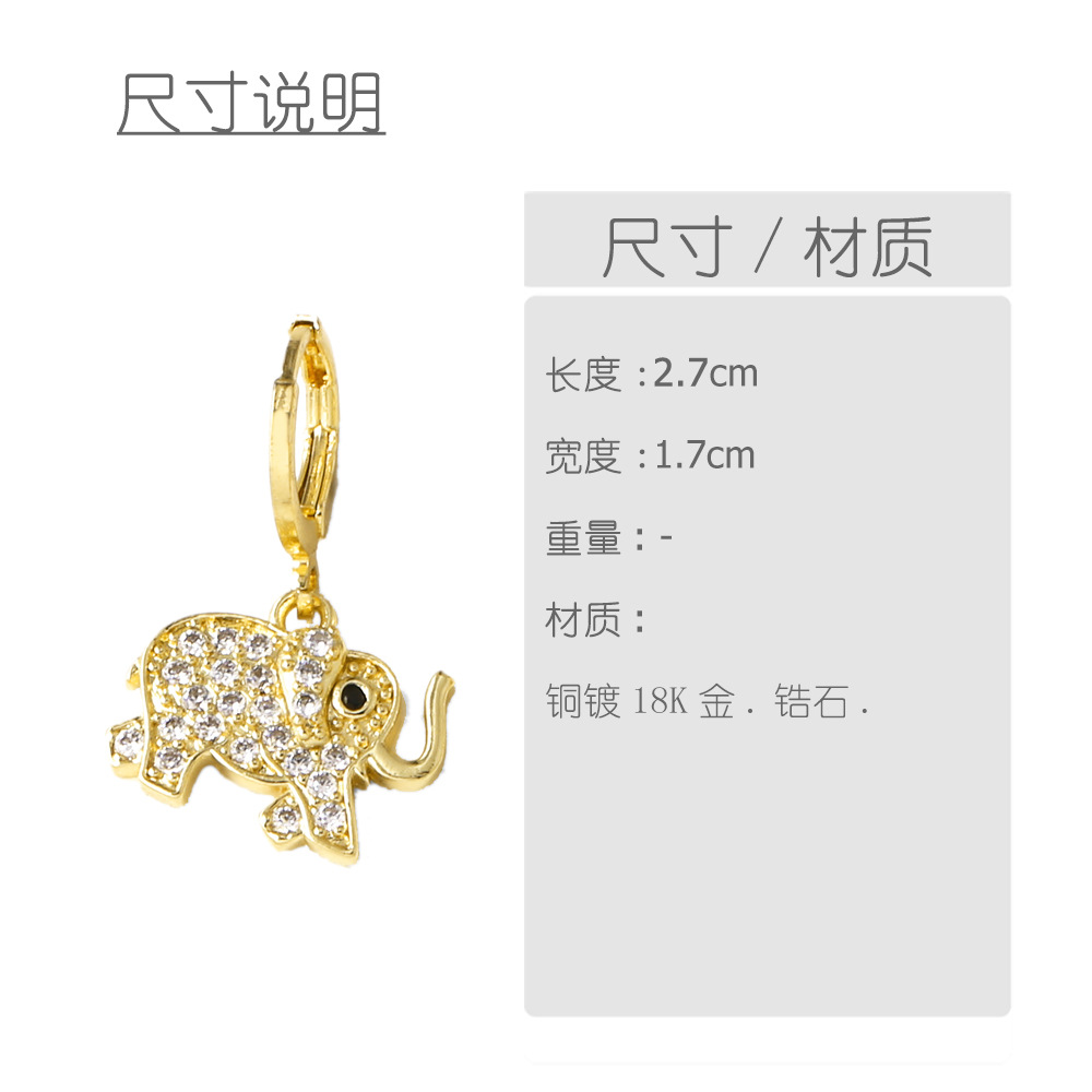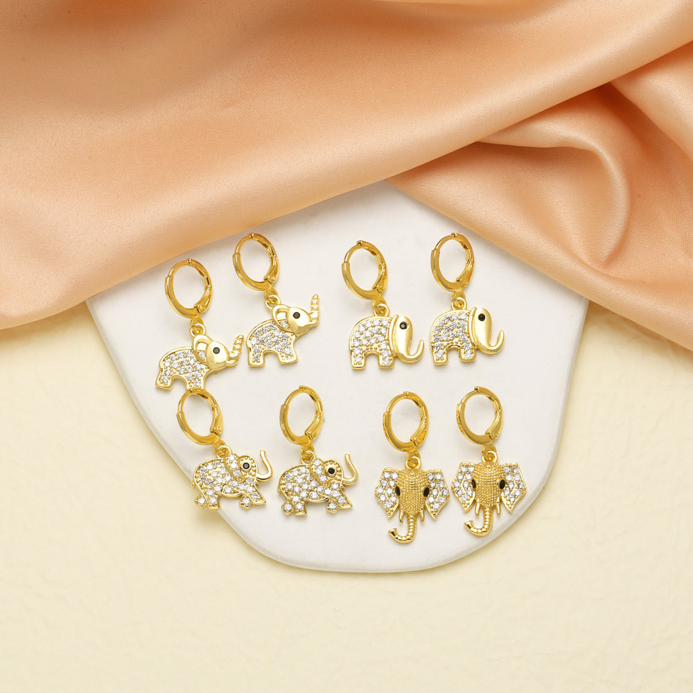 AS Jewelry Hot Selling Copper Plated 18K Gold Full Zircon Elephant Pendant Earrings Era058