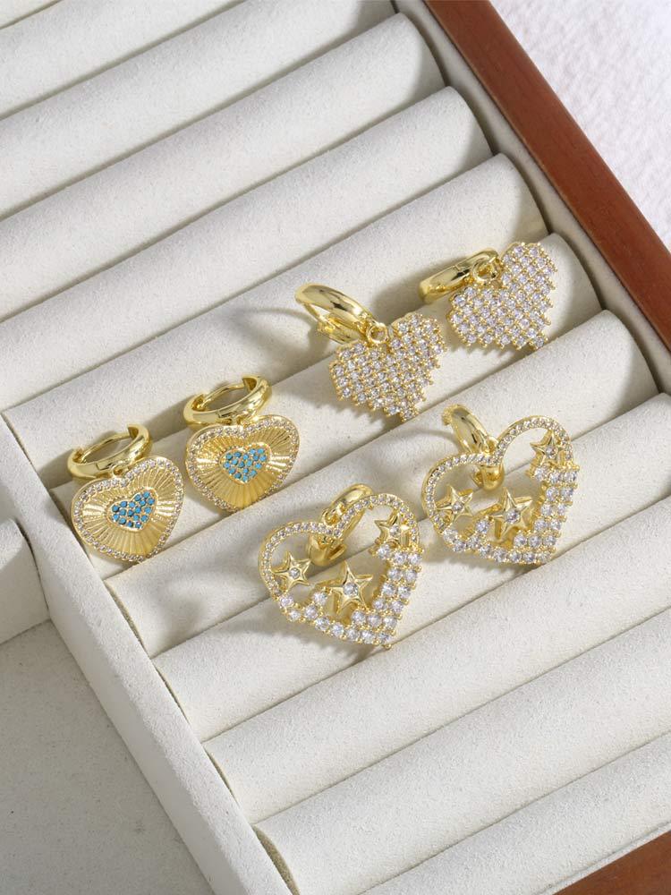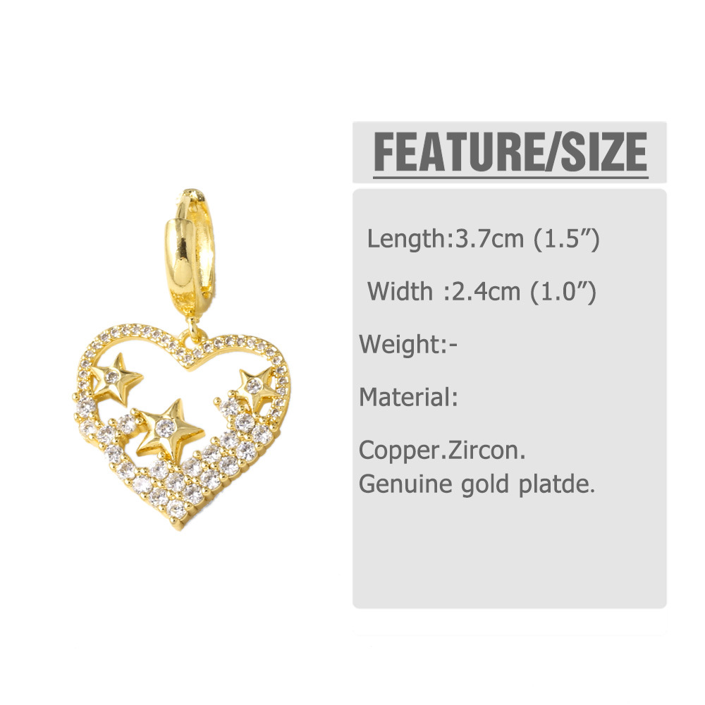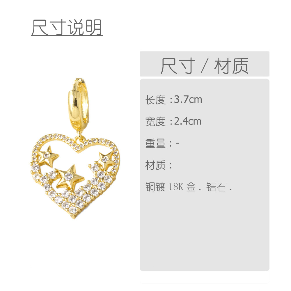 AS jewelry hot selling copper plated 18k gold heart star full zircon earrings female ery99