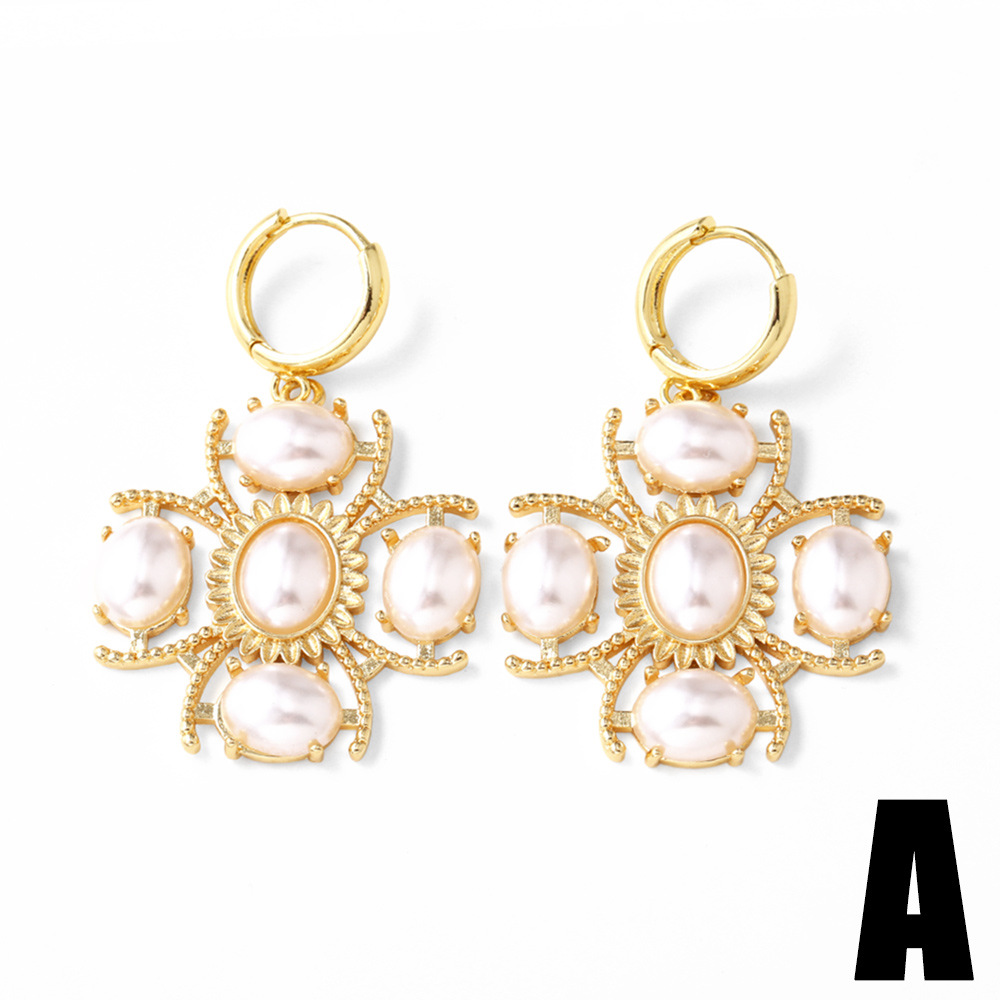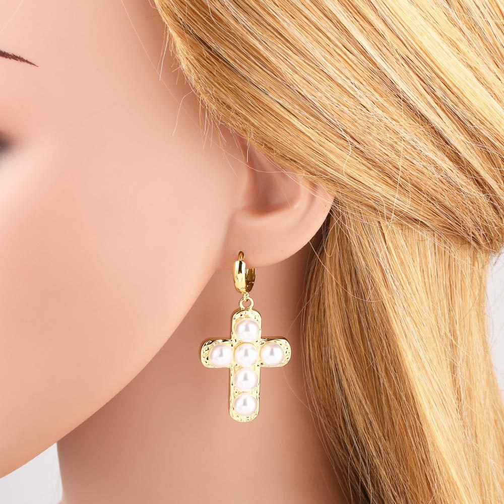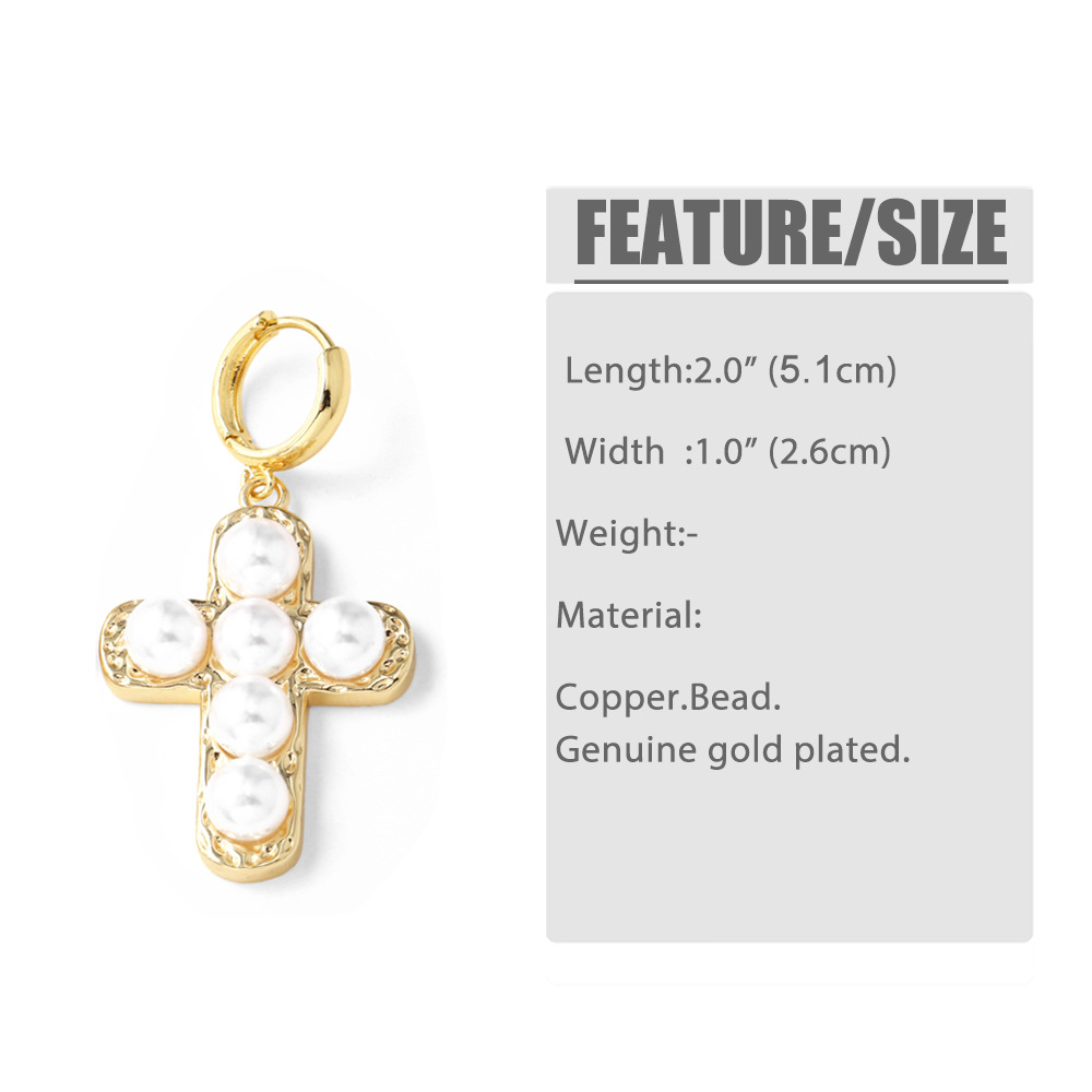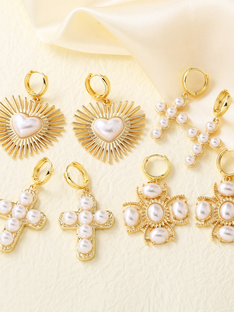 AS jewelry hot selling copper plated 18k gold pearl cross heart earrings earrings earrings erq64