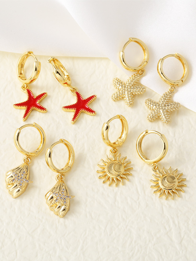 AS jewelry hot selling copper plated 18k gold starfish sun pendant earrings earrings female era337