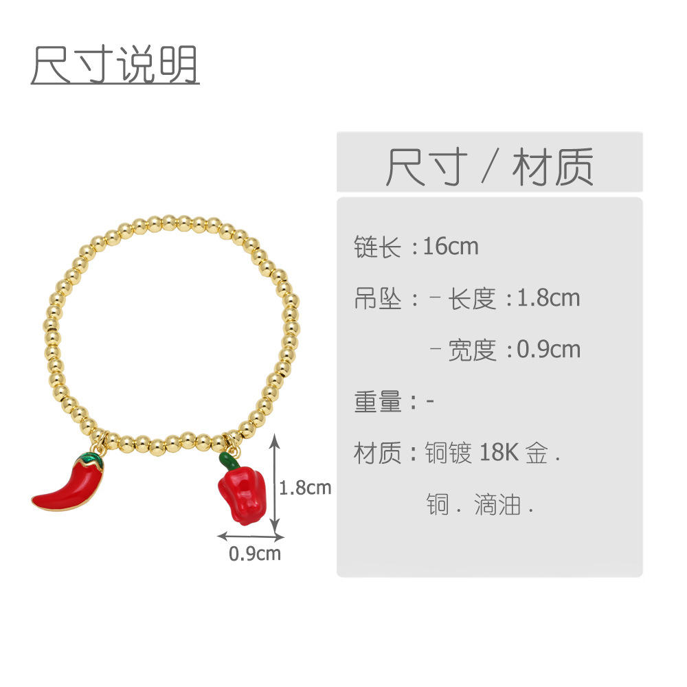 AS jewelry hot-selling copper plated 18k gold vegetable pepper oil drop pendant bracelet bracelet female brm98