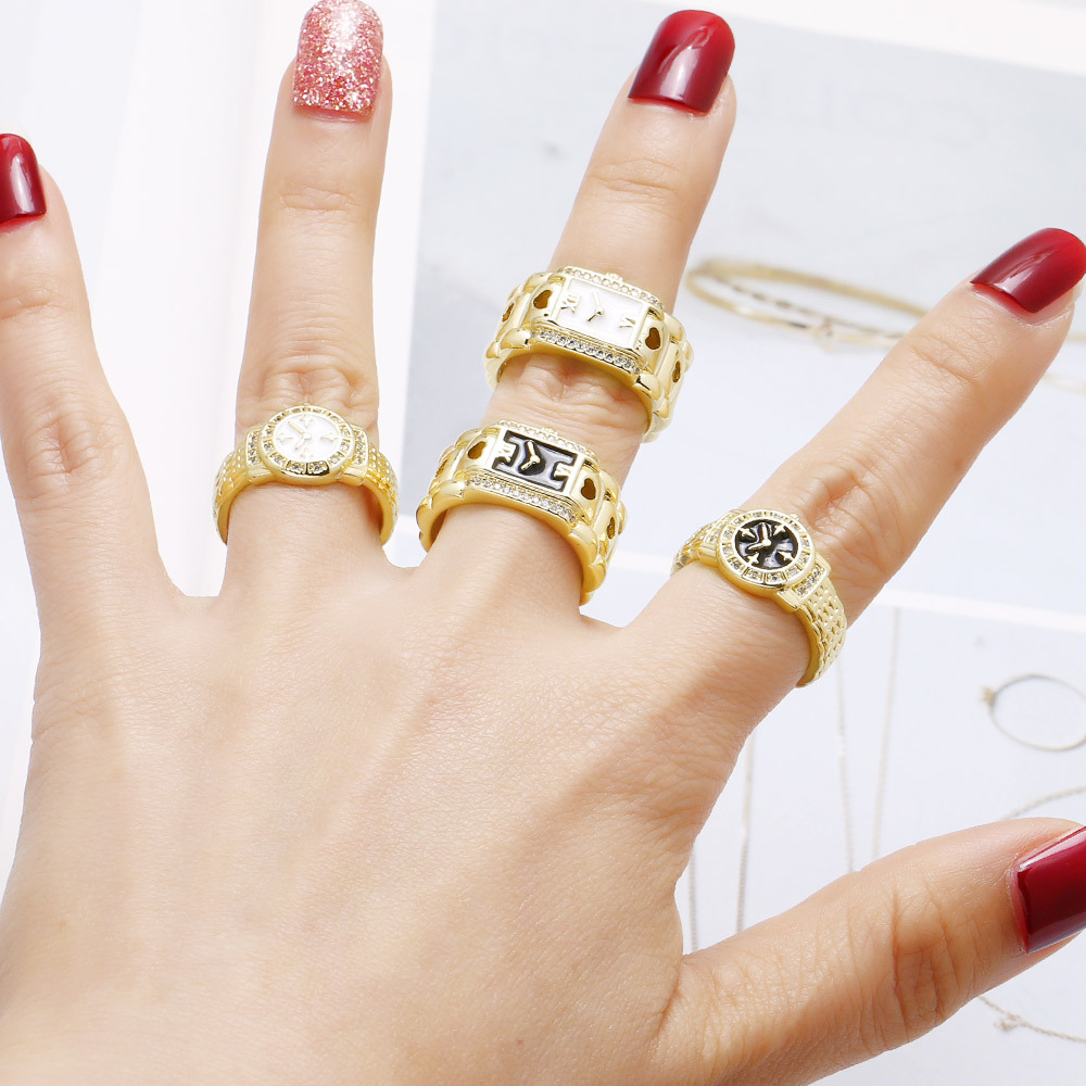 AS jewelry hot-selling copper plated 18k gold watch clock open ring ring rin20 ring