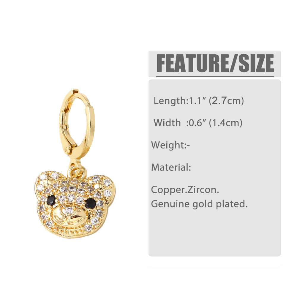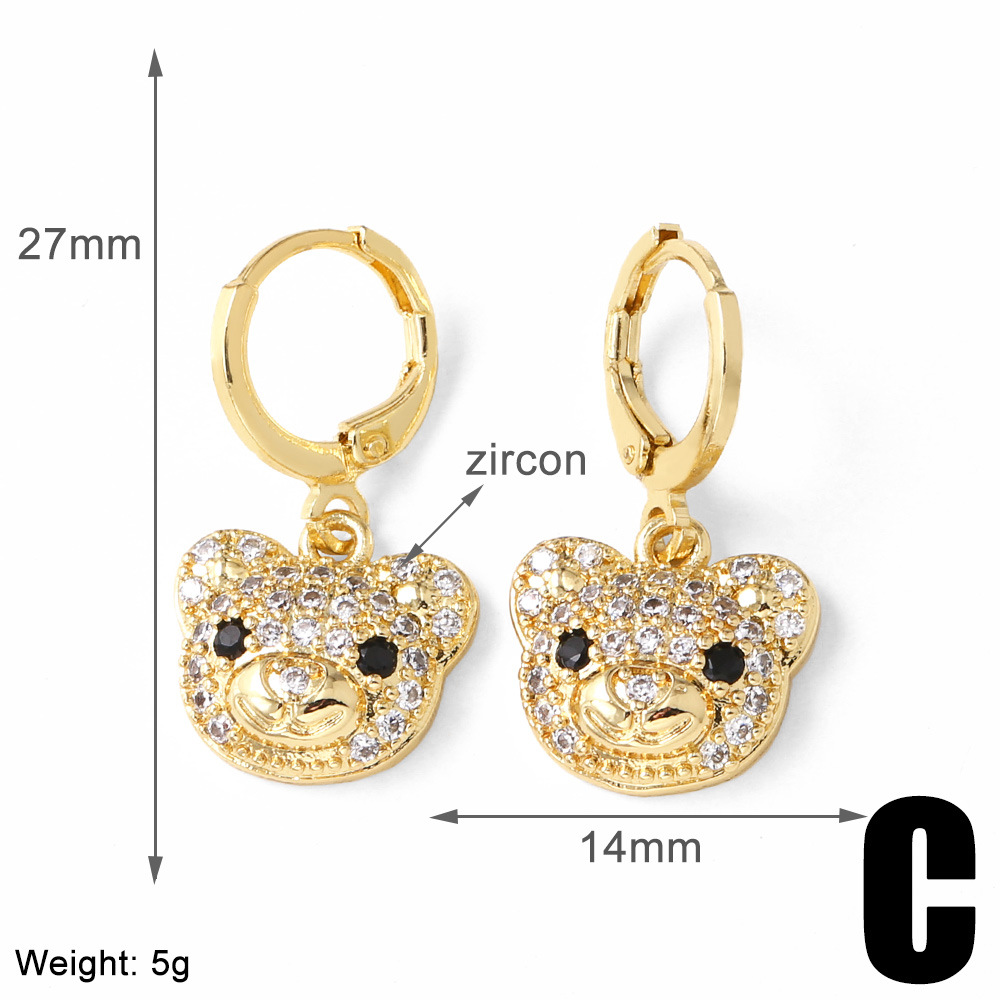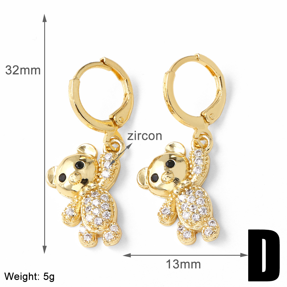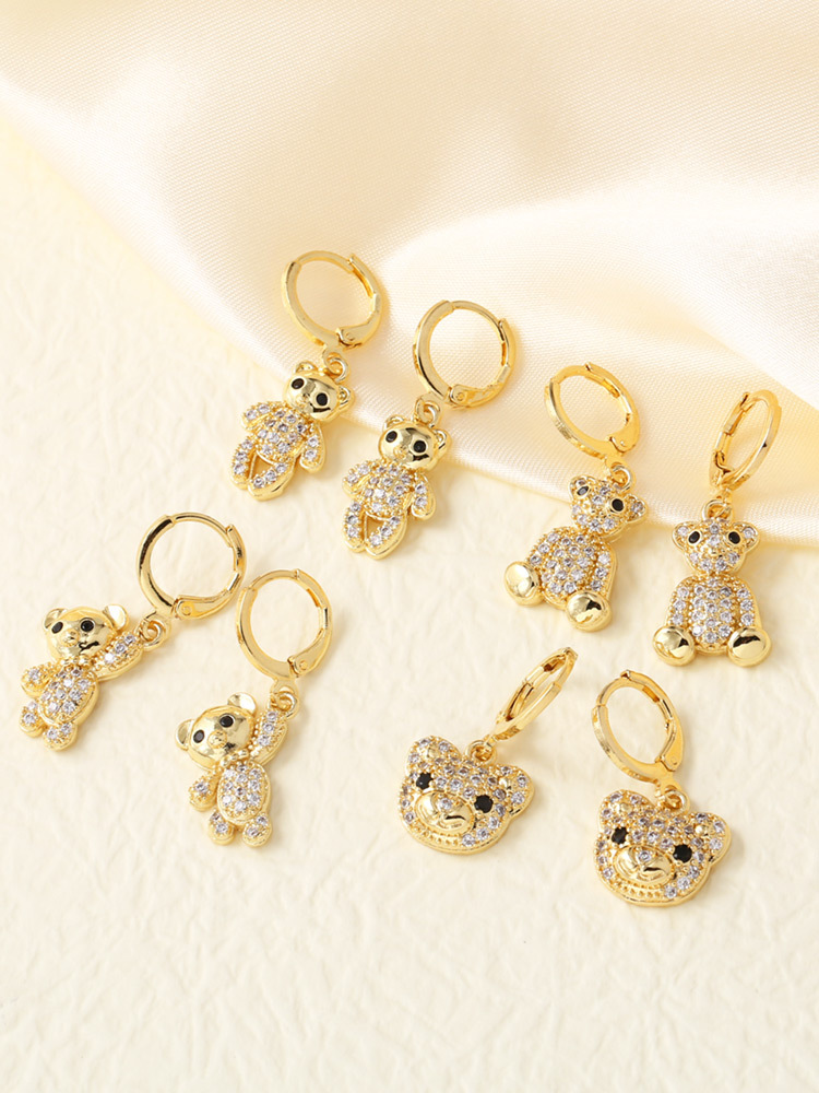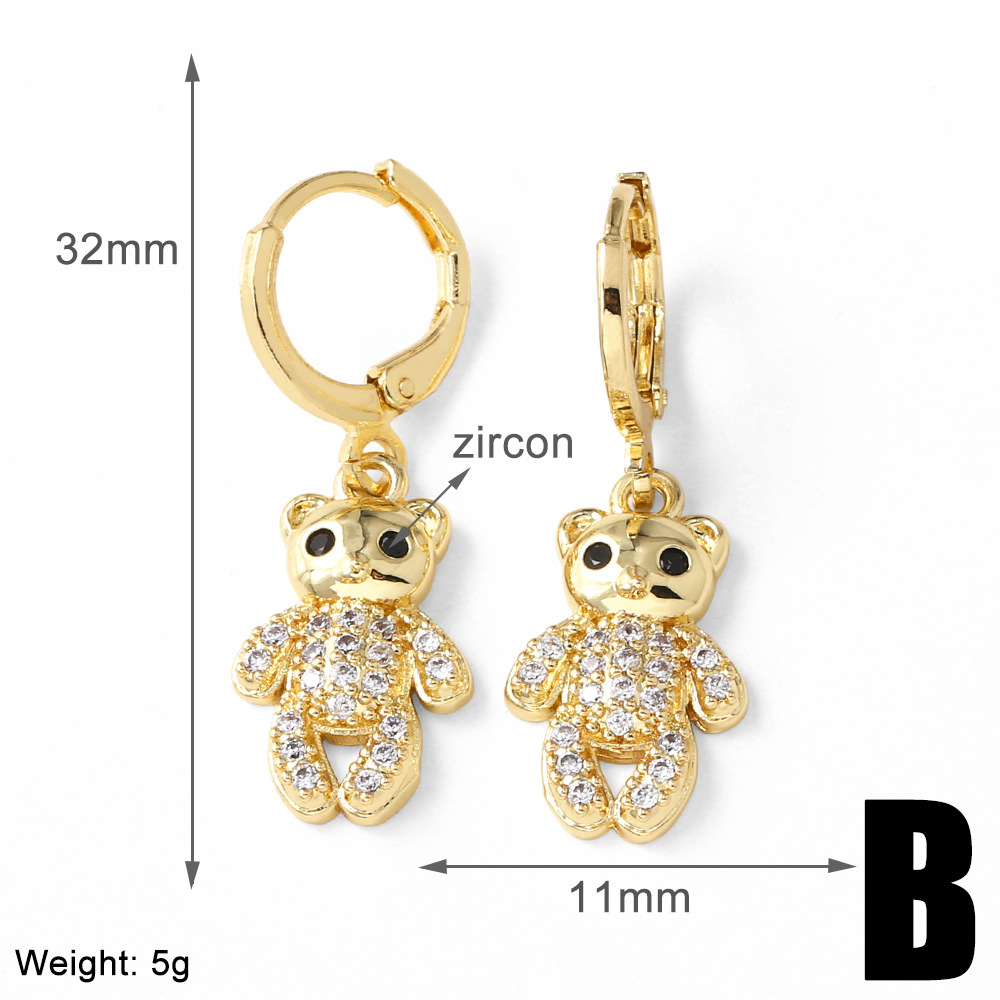 AS jewelry hot selling copper plated 18k gold zircon bear pendant earrings earrings female ers96