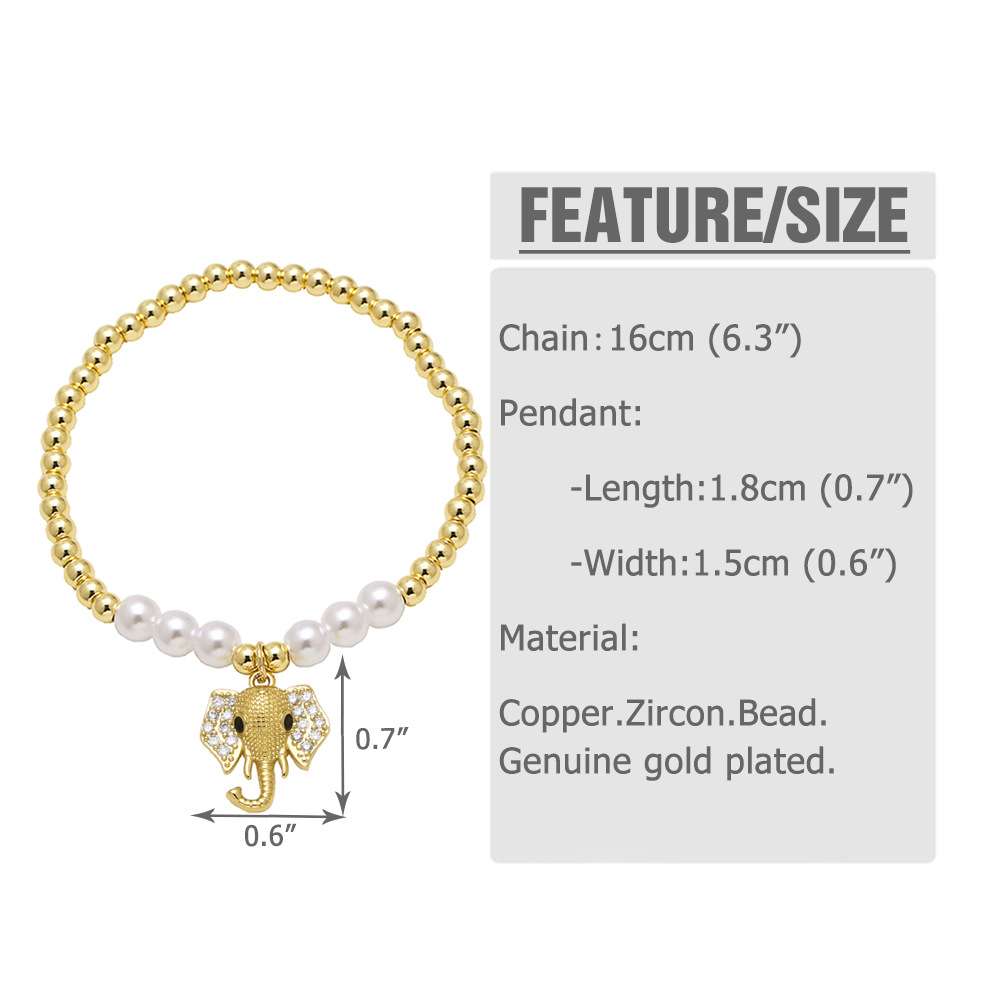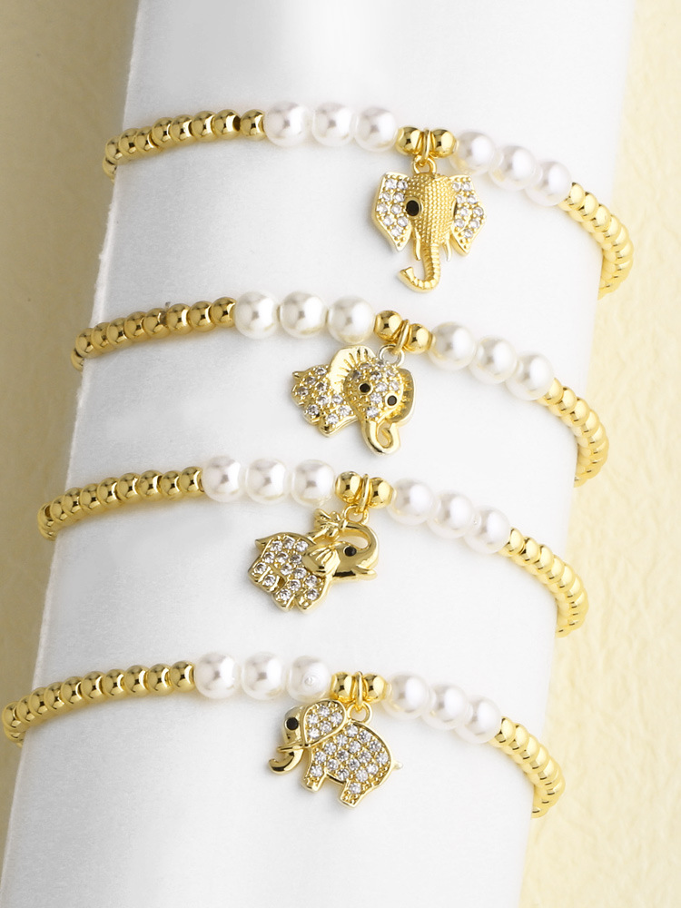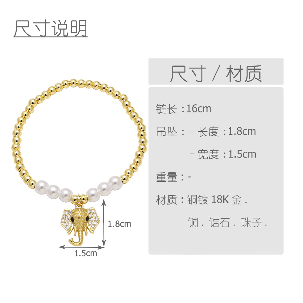 AS jewelry hot selling copper plated real gold animal elephant pendant pearl beaded bracelet hand jewelry female bra59