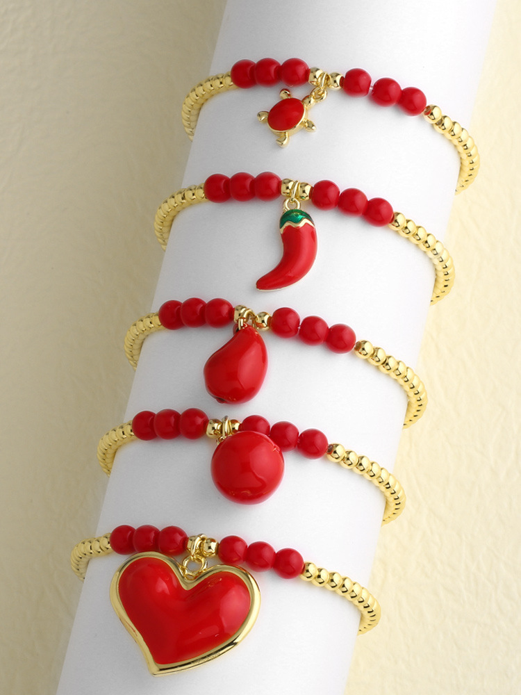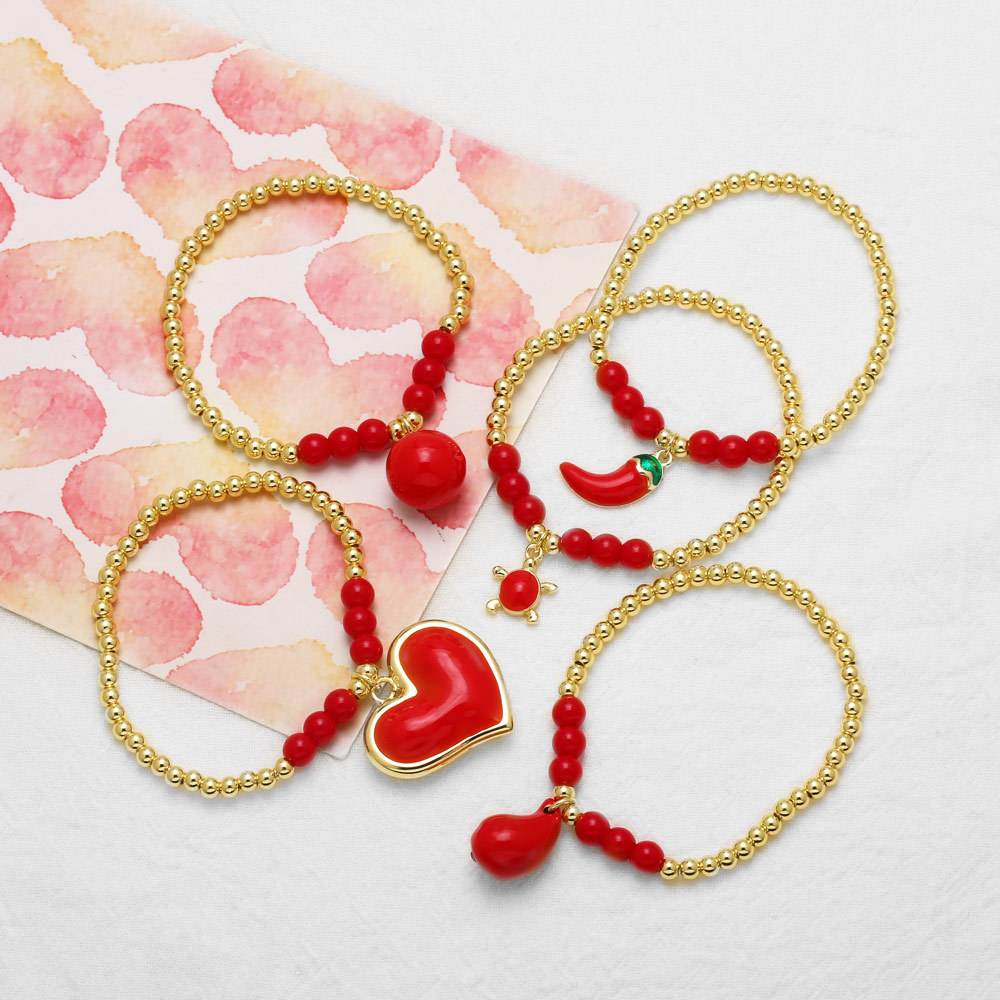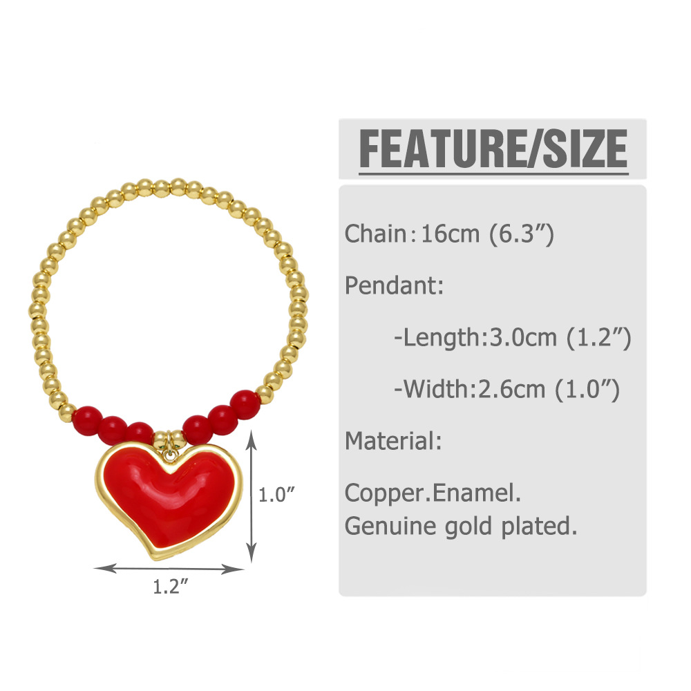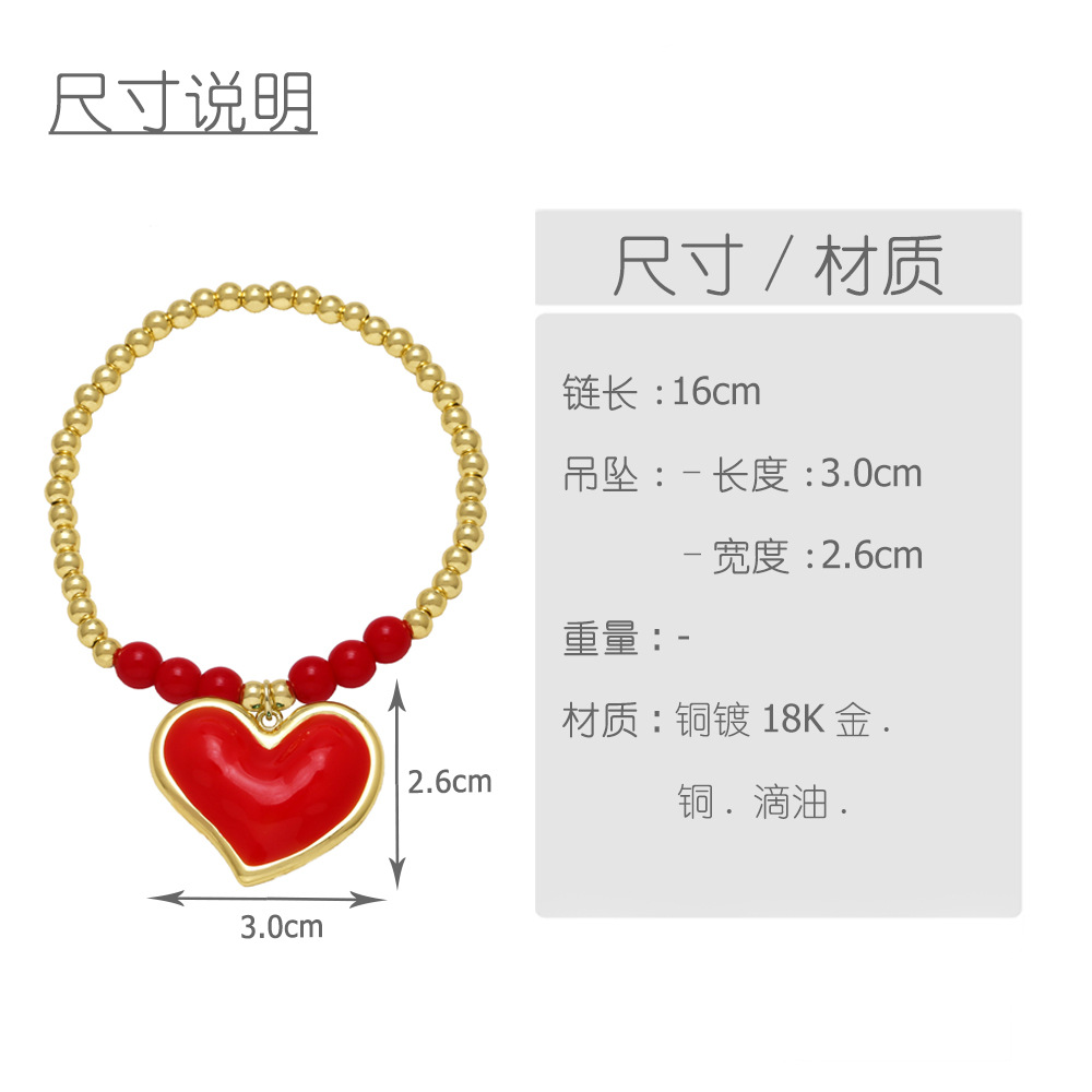 AS jewelry hot selling copper plated real gold love heart pendant bracelet beaded bracelet brc03