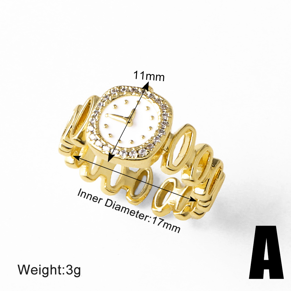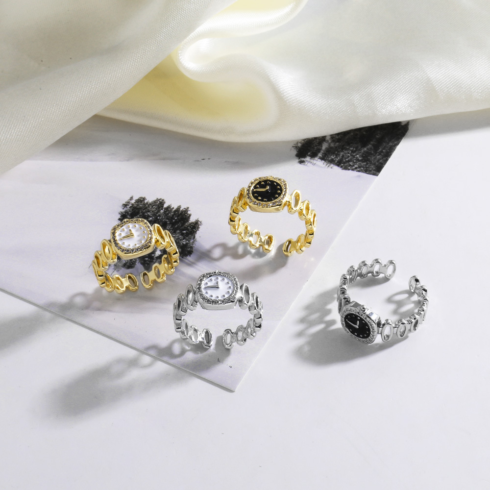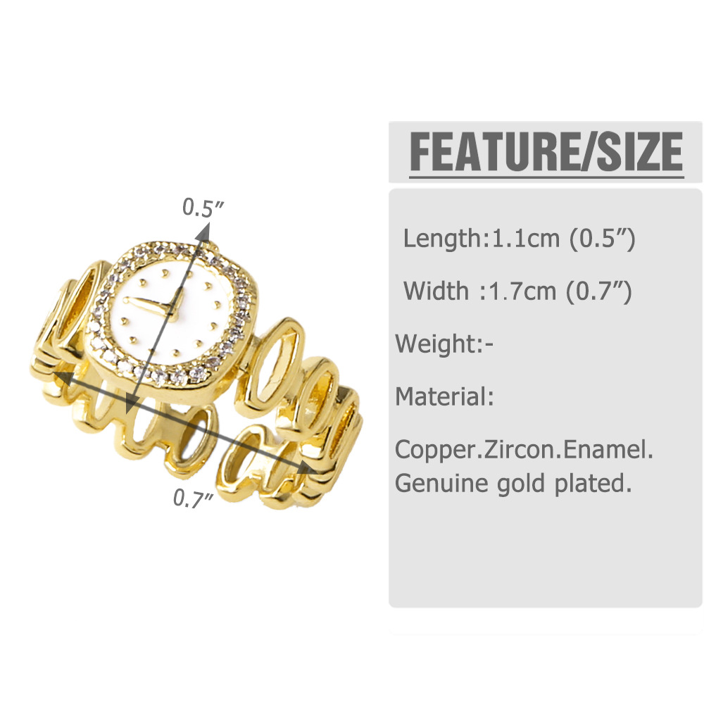 AS jewelry hot selling copper plated real gold oil watch clock open ring ring female ris08