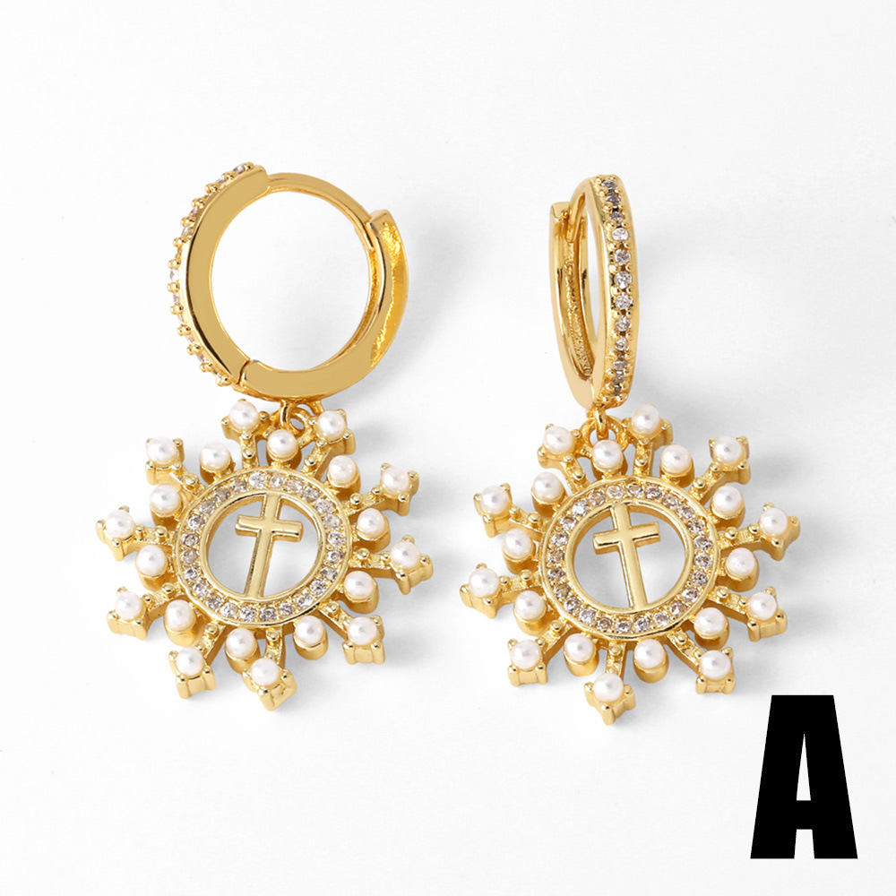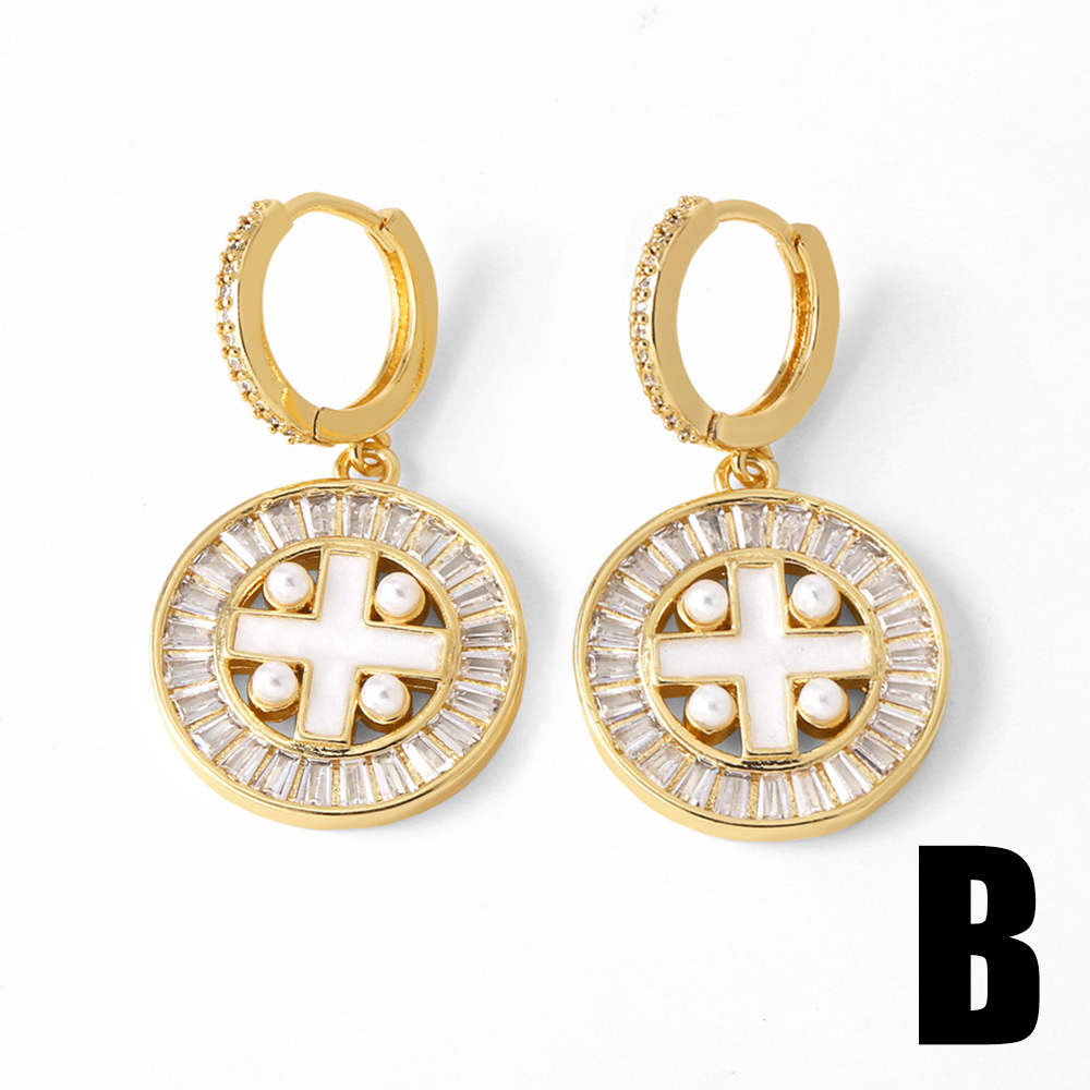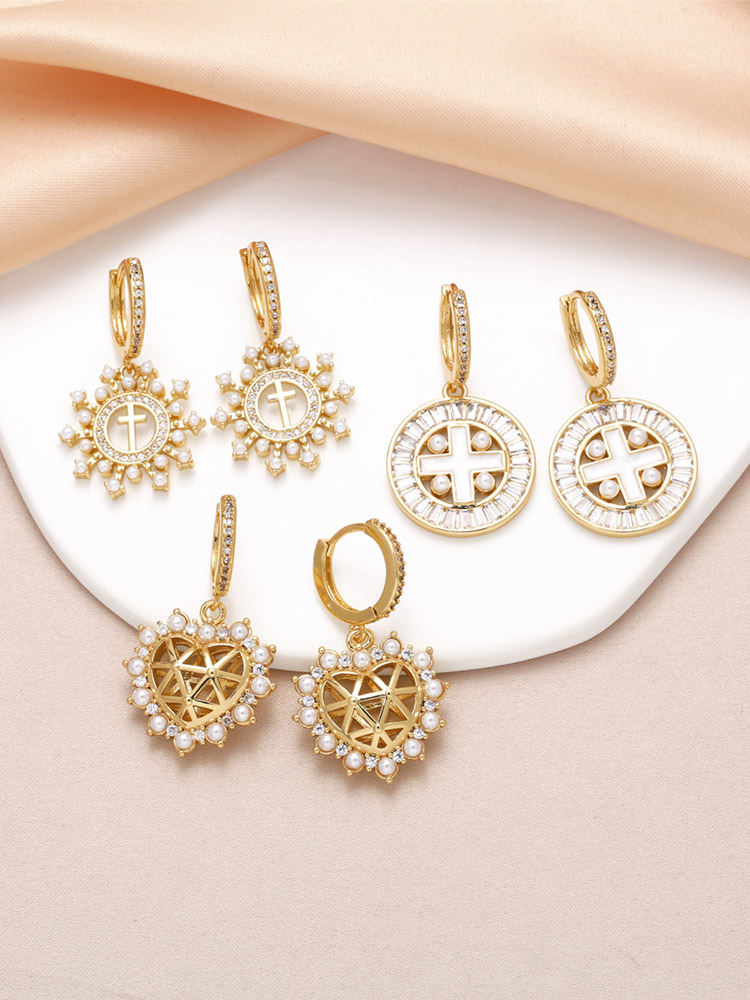 AS jewelry hot selling cross earrings female gold-plated zircon shell heart earrings erw14