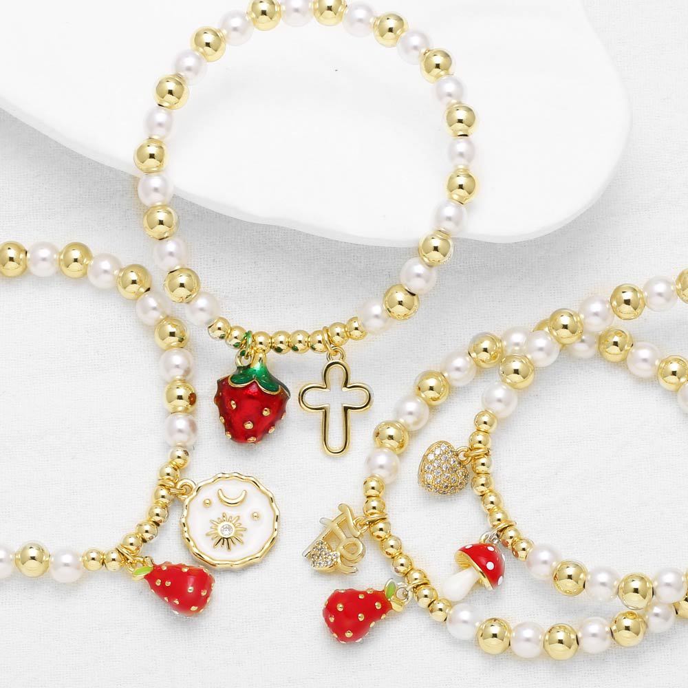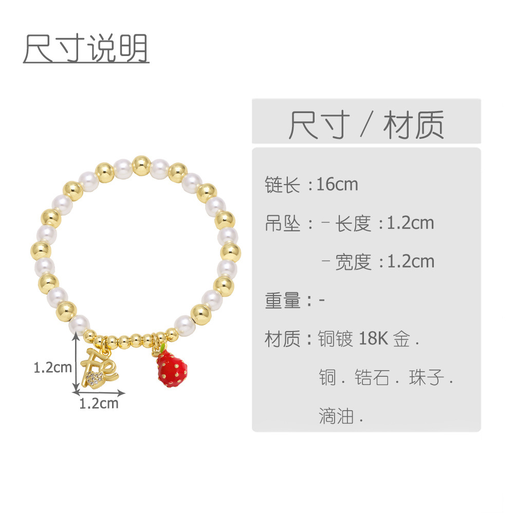 AS jewelry hot selling cross fruit strawberry pendant gold-plated pearl bracelet female brm80