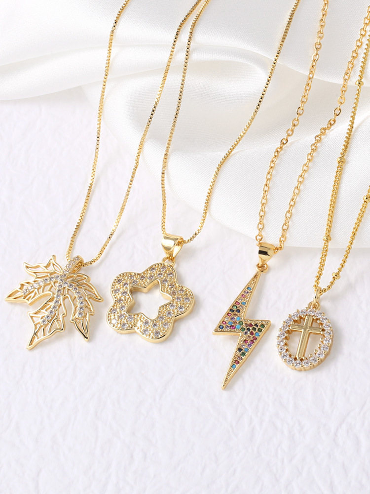 AS jewelry hot selling cross lightning pendant necklace copper plated real gold clavicle chain nkb096