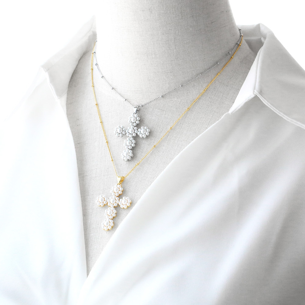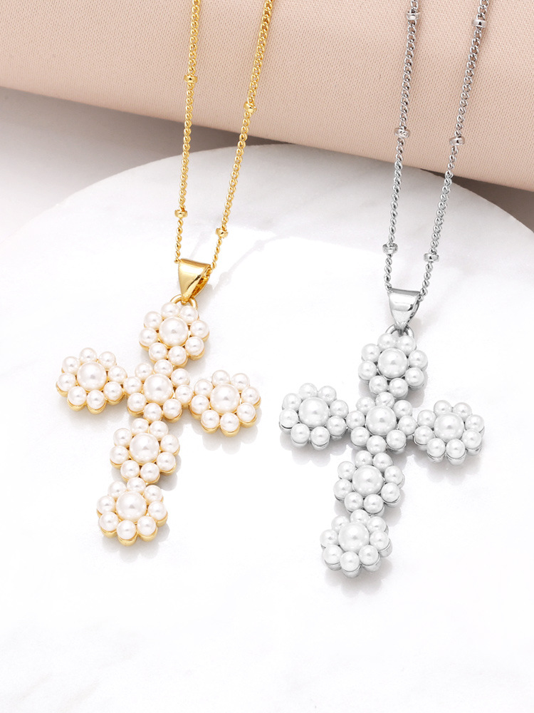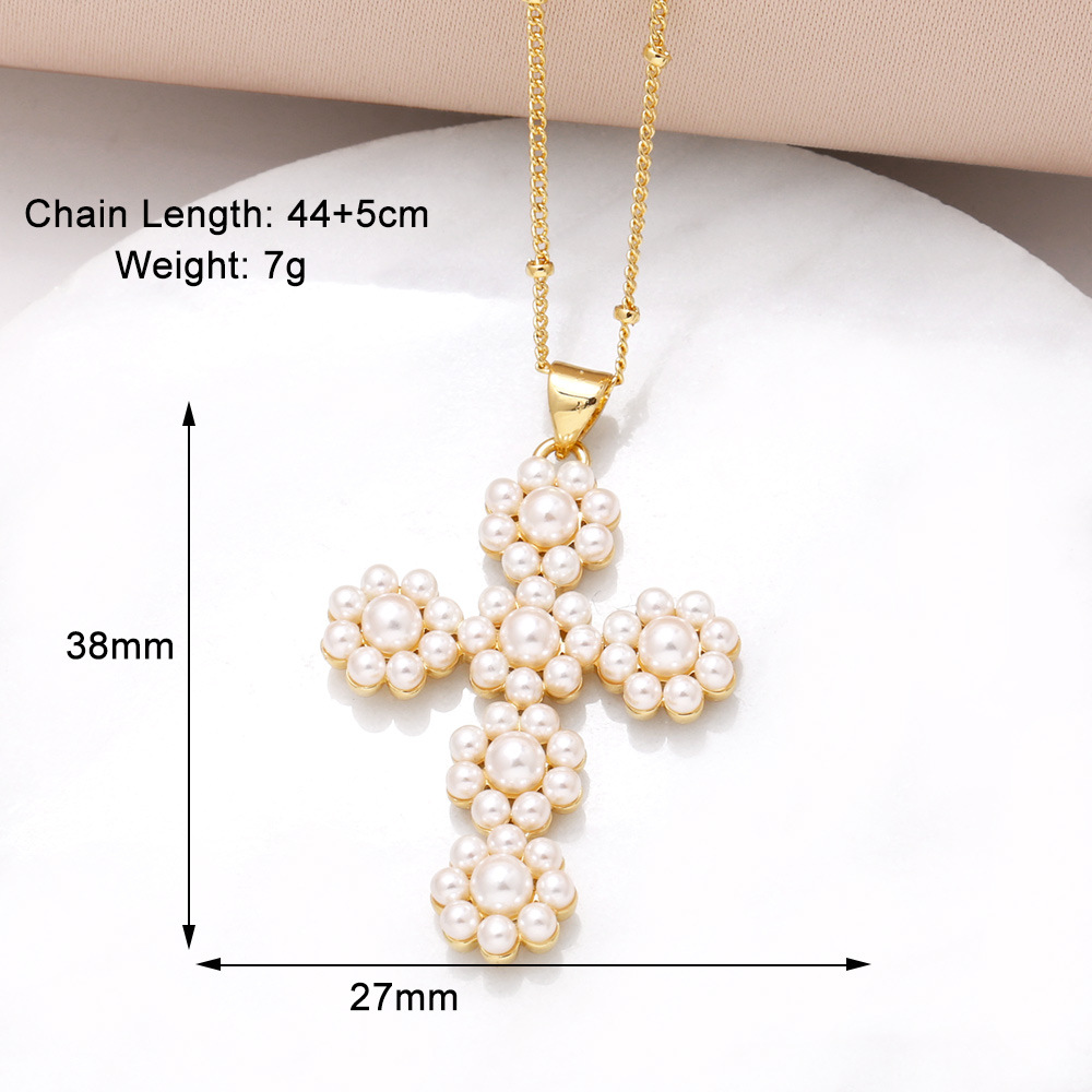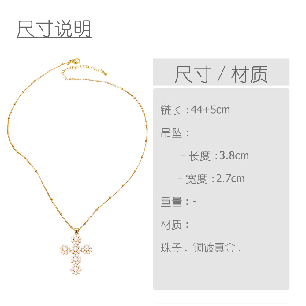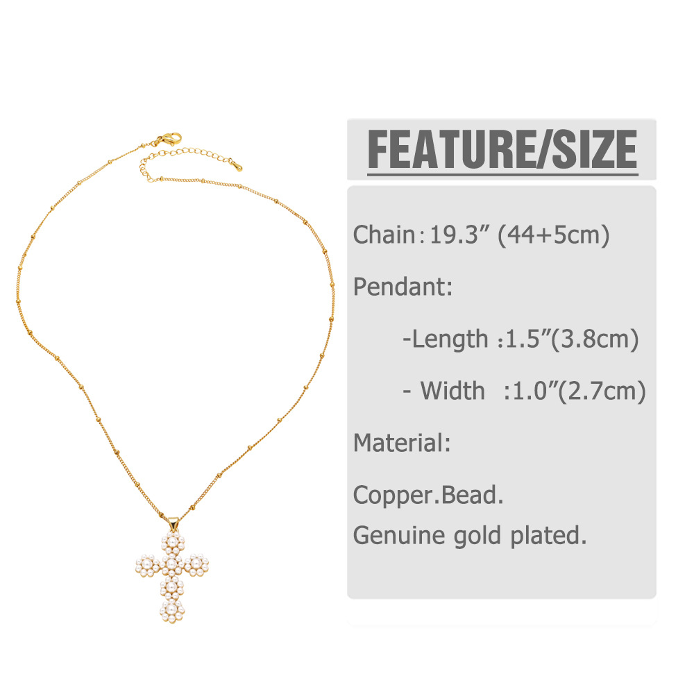 AS jewelry hot selling cross pearl pendant necklace female copper plated real gold clavicle chain nkq08