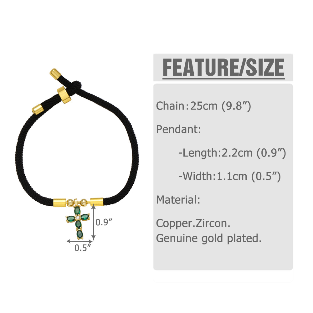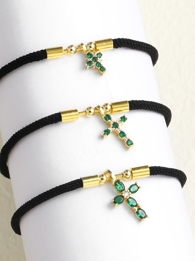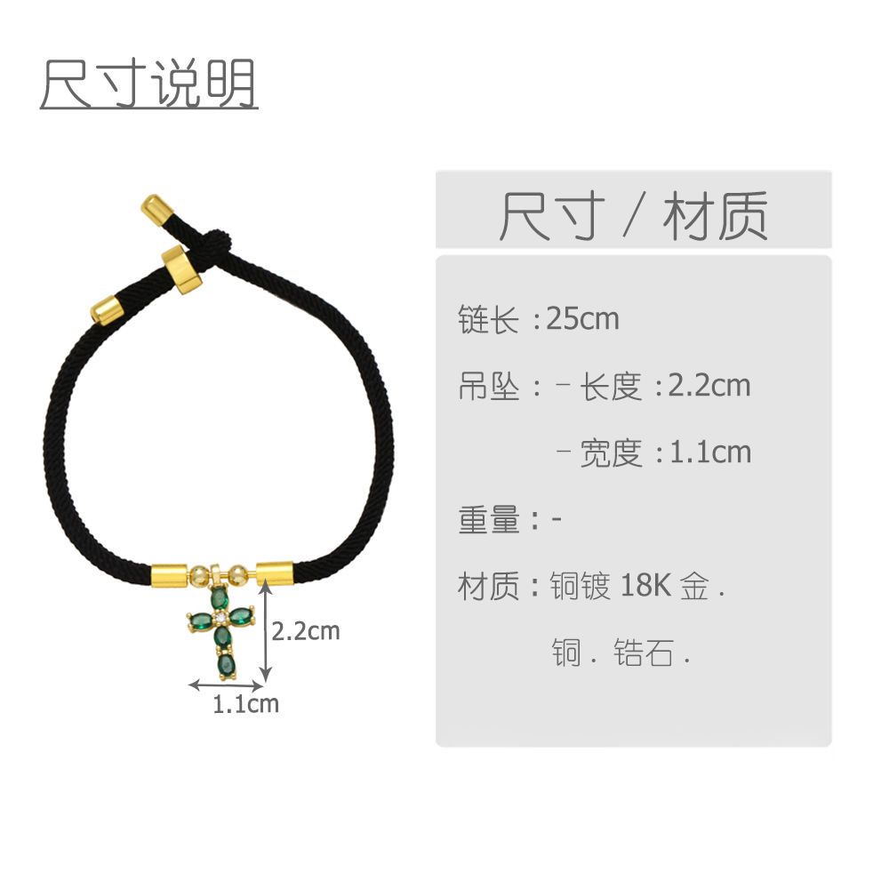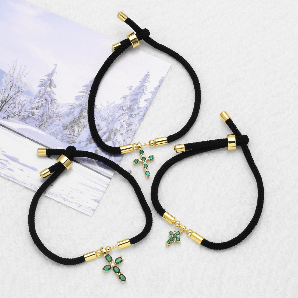 AS jewelry hot selling cross pendant black hand rope adjustable bracelet female bra27