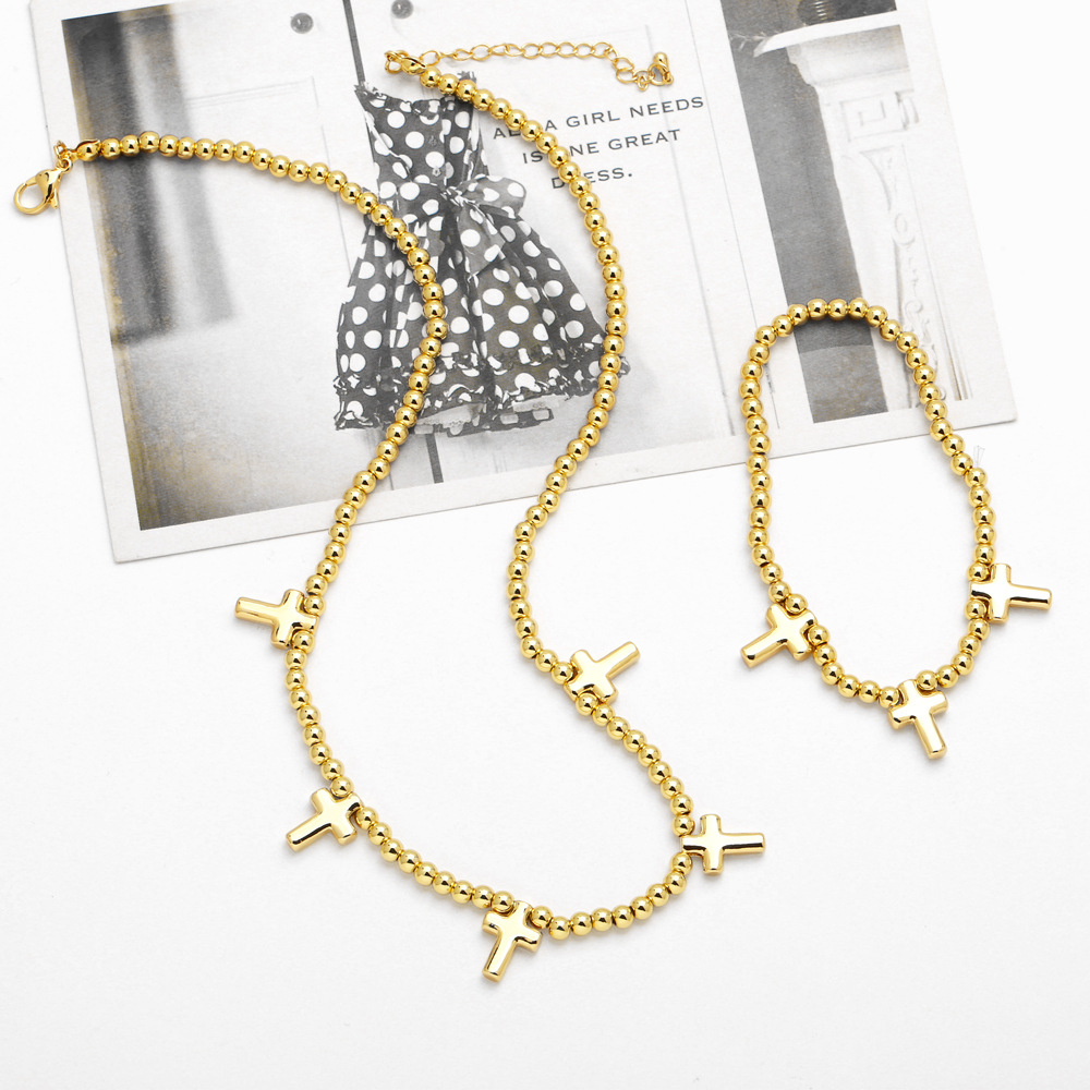 AS jewelry hot selling cross pendant necklace copper plated real gold bracelet bracelet necklace nky66