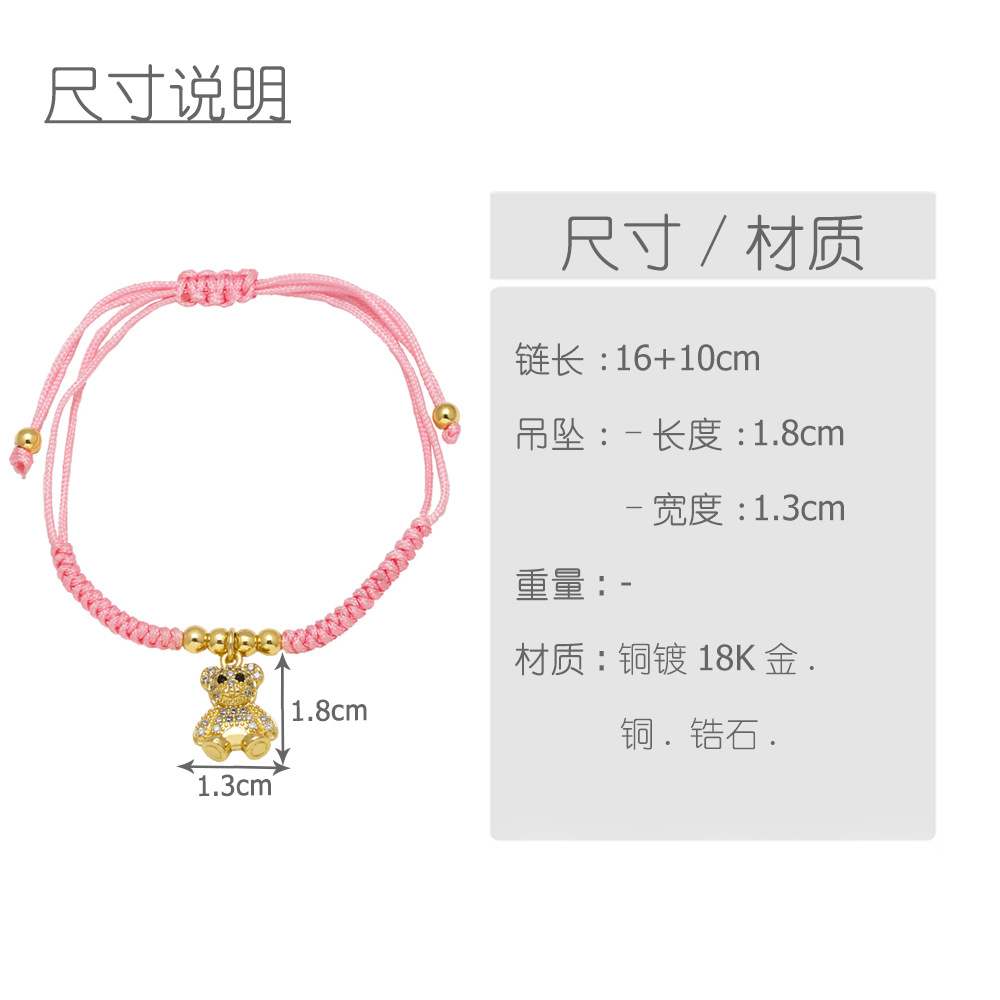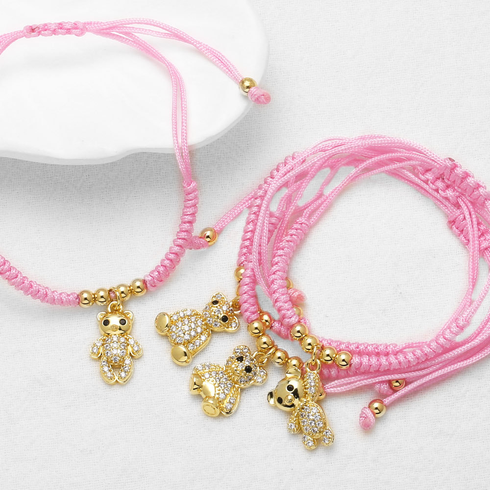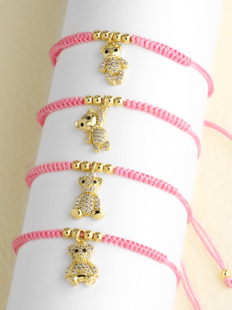 AS jewelry hot selling cute bear pendant bracelet copper plated real gold adjustable hand strap brd71