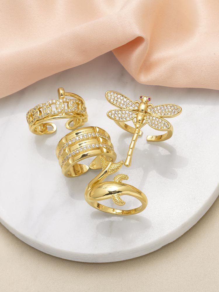 AS jewelry hot selling dragonfly open ring copper plated 18k gold inlaid zircon whale ring rih82