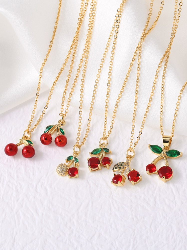 AS jewelry hot selling fruit cherry pendant necklace female gold-plated oil drop clavicle chain nky75