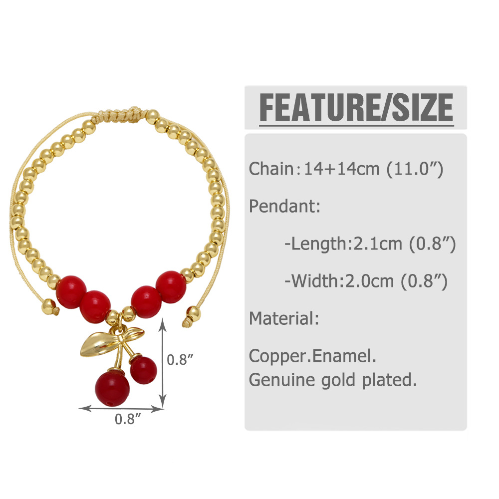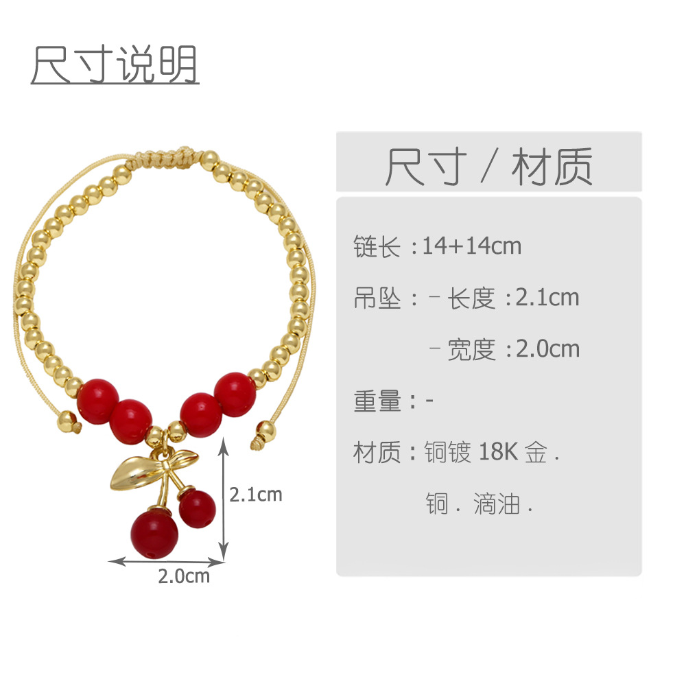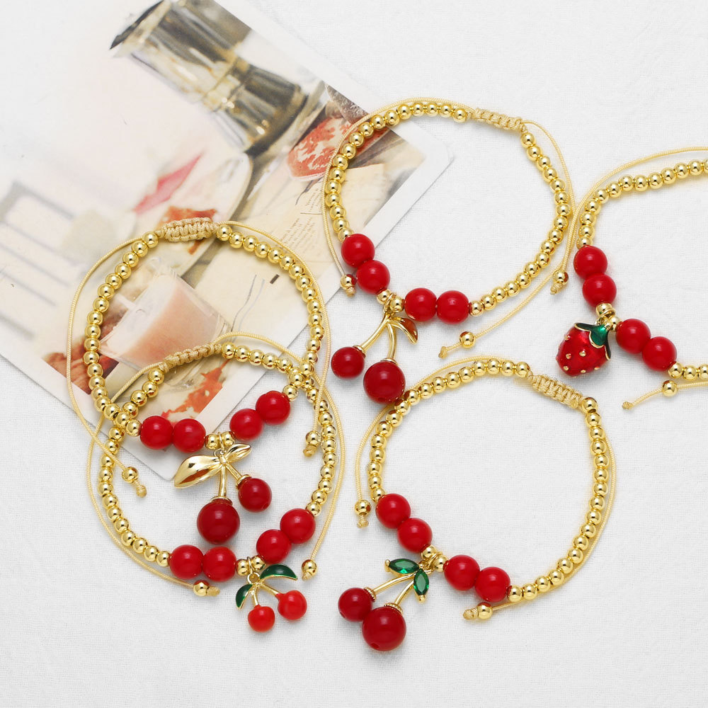 AS jewelry hot selling fruit cherry strawberry pendant copper plated real gold bracelet bracelet female brb55