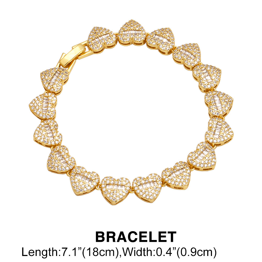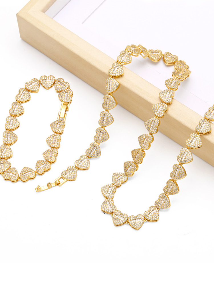 AS jewelry hot selling full diamond high-end love heart-shaped necklace bracelet gold-plated clavicle chain nks19