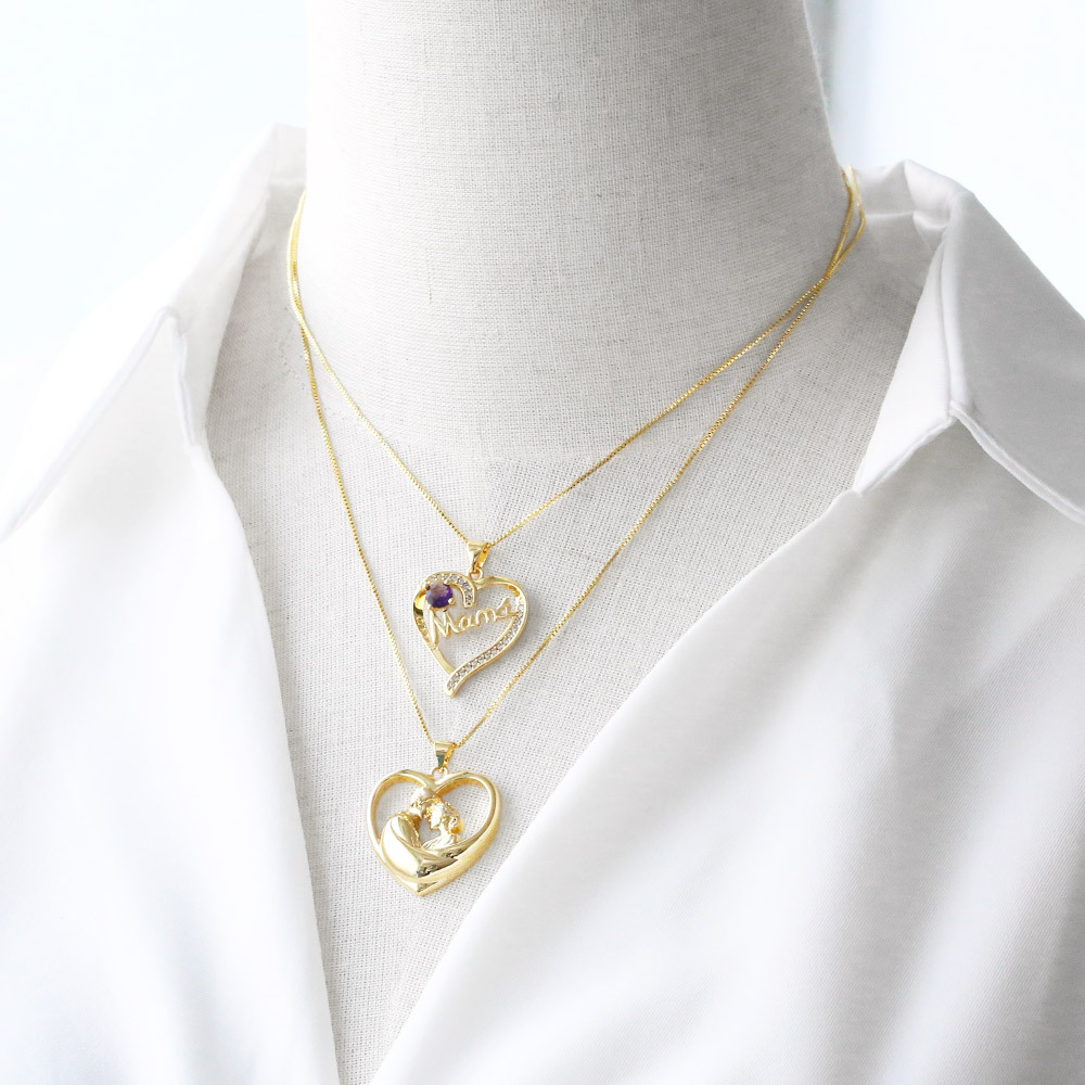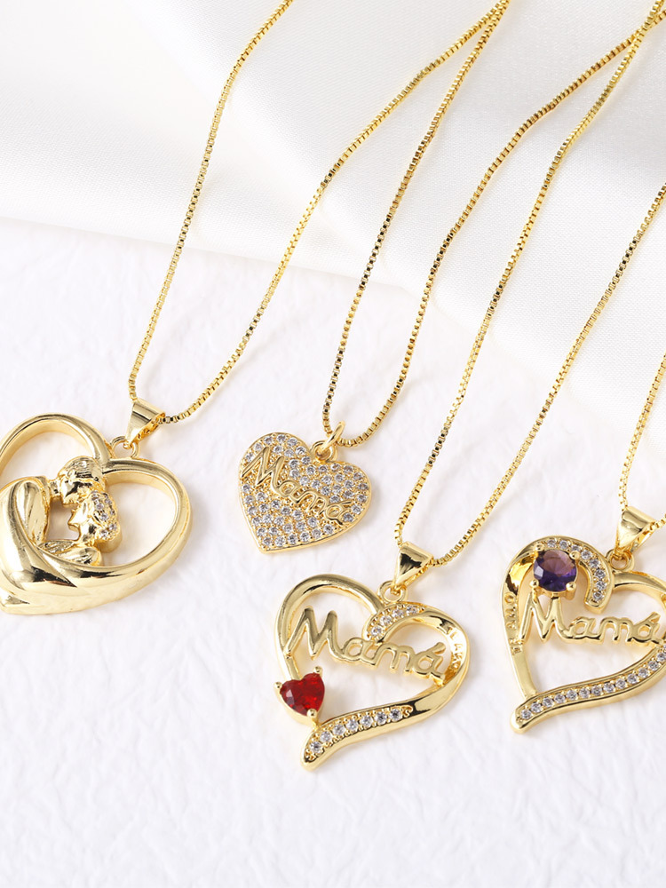 AS jewelry hot selling full zircon Mother's Day heart-shaped love pendant necklace clavicle chain nkb169
