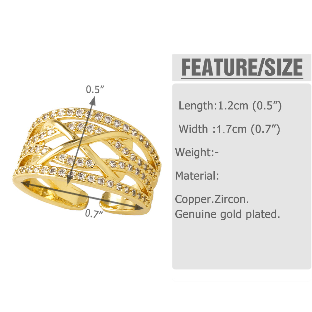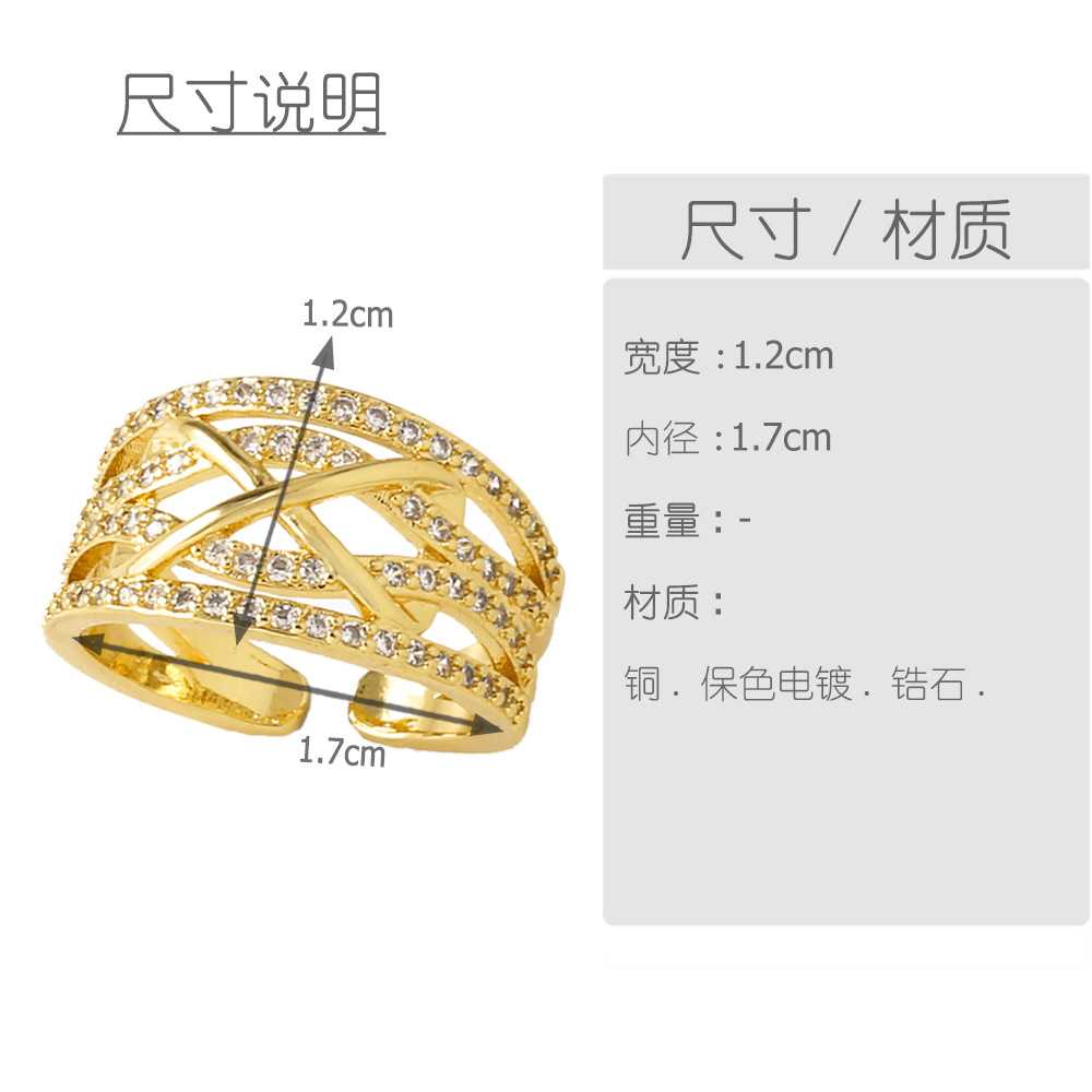 European and American luxury design ring fashionable temperament horse eye zircon ring multi-layer hollow design index finger ring