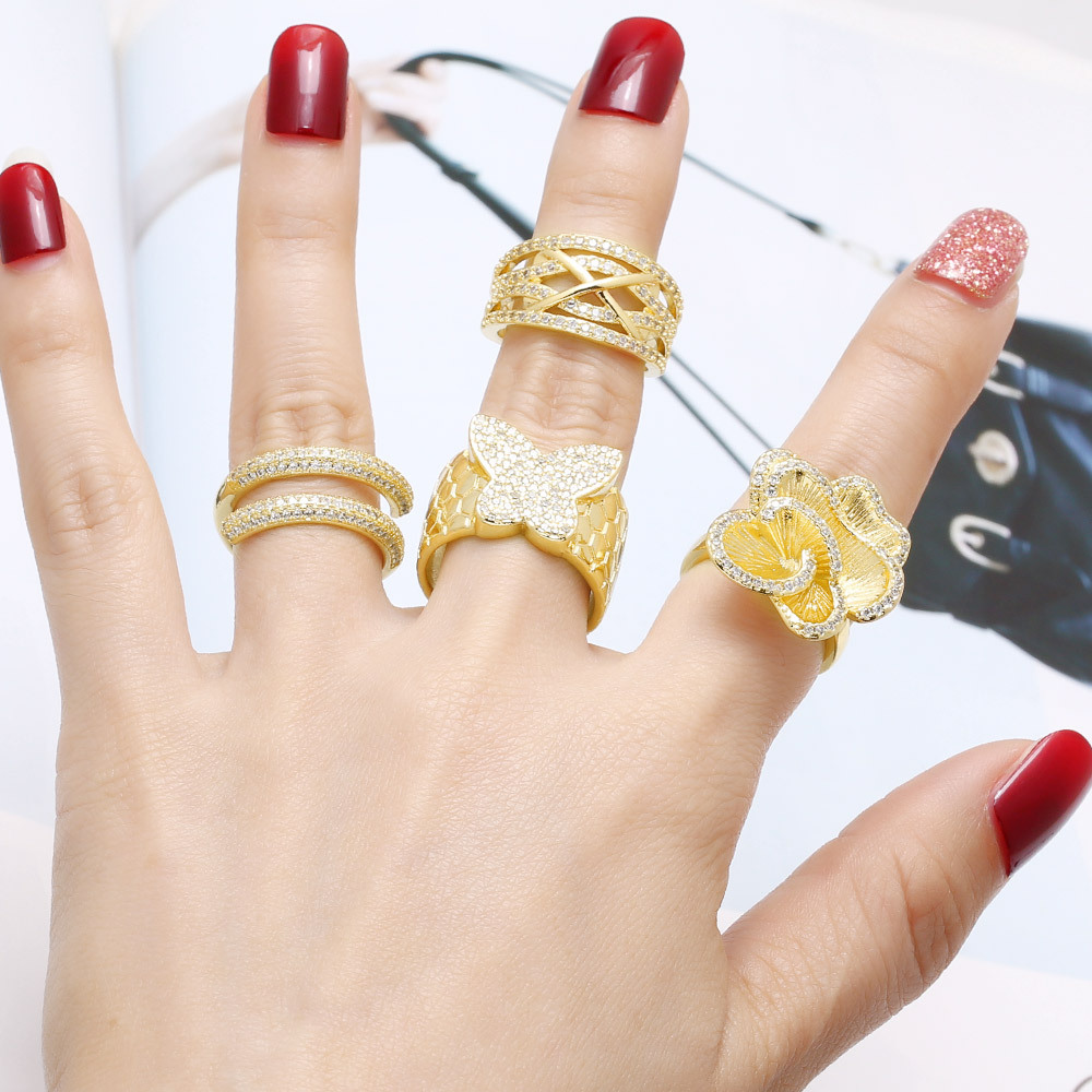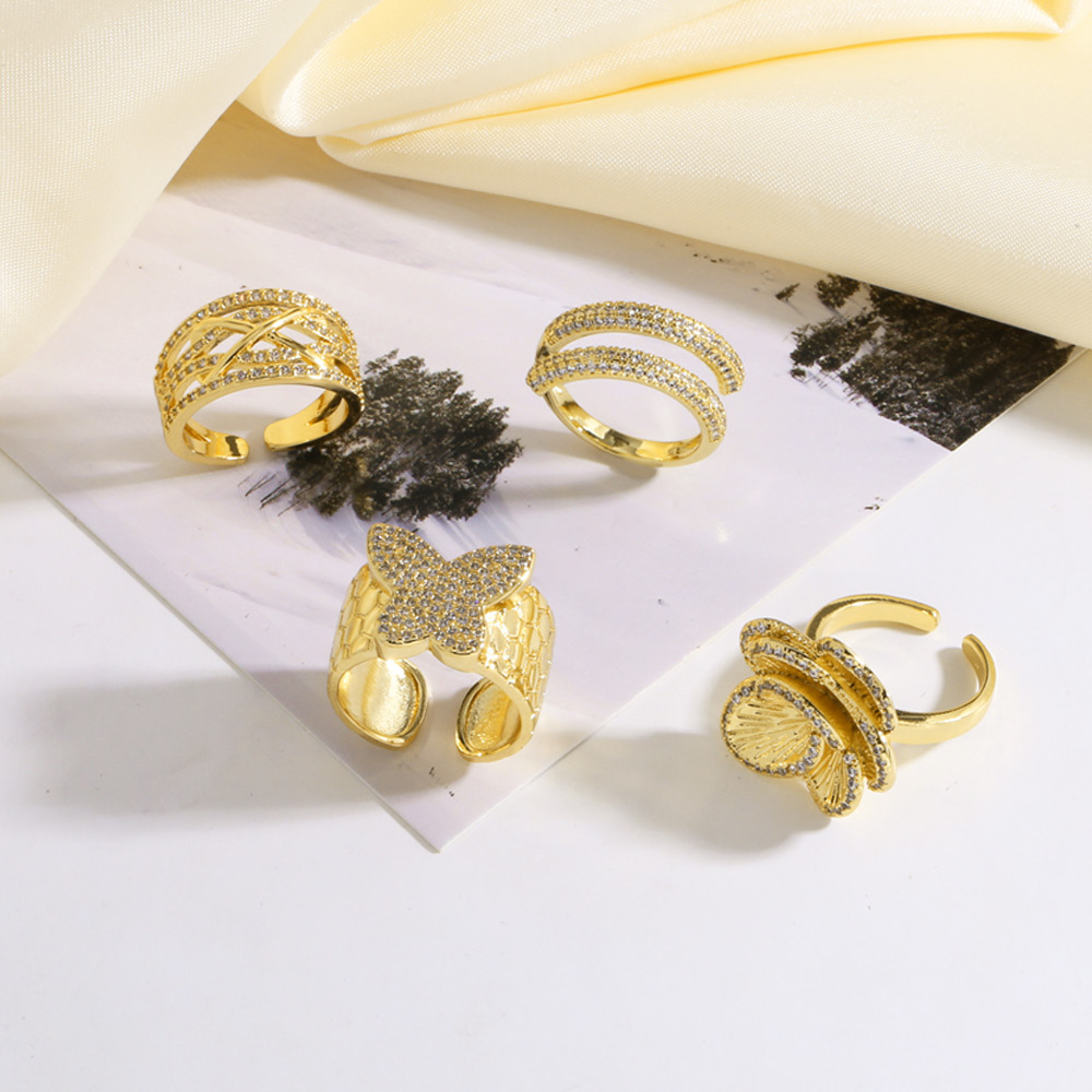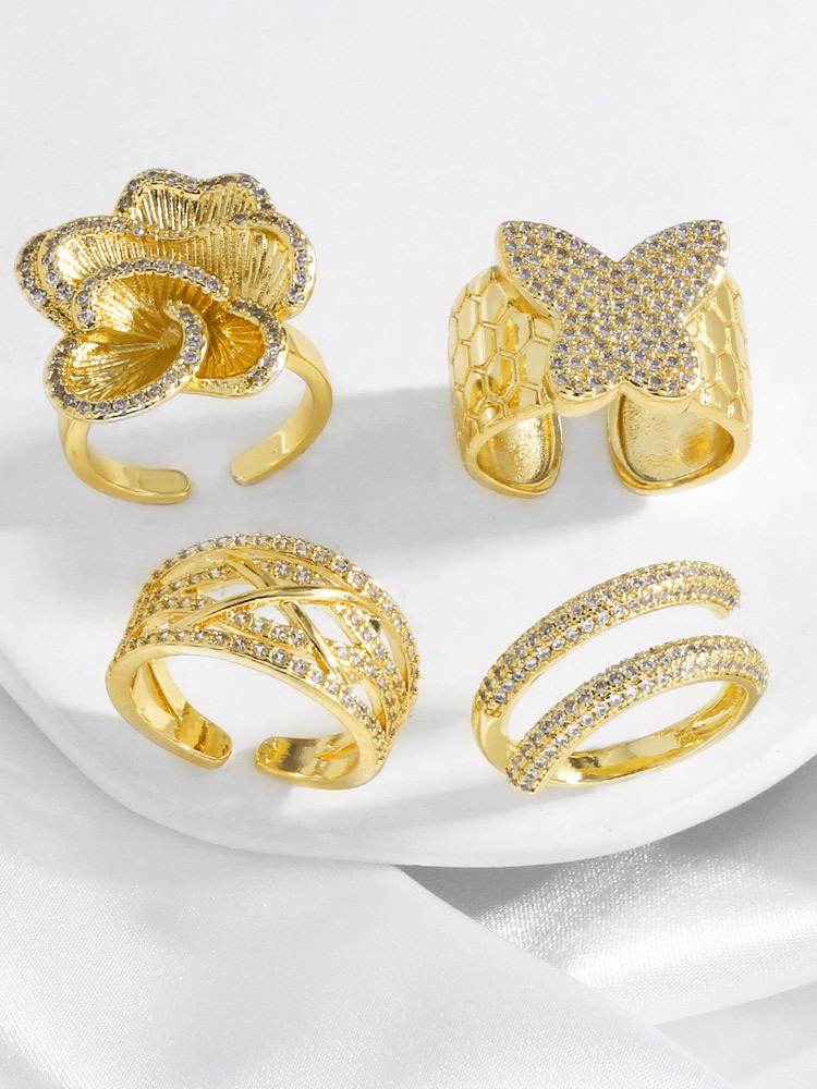 AS jewelry hot selling gold full zircon butterfly flower open ring female rin77