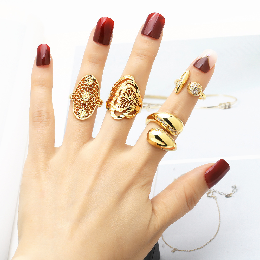 AS jewelry hot selling gold-plated open ring retro irregular inlaid zircon ring female rik25
