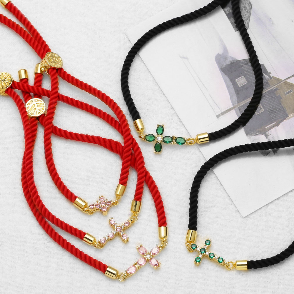 AS jewelry hot selling hand-woven adjustable hand rope cross pendant bracelet female brd35