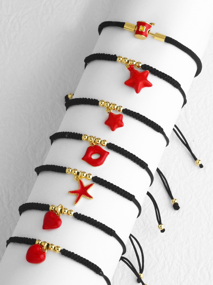 AS jewelry hot selling hand-woven black rope adjustable lips star pendant bracelet brd26