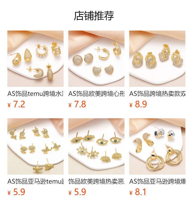 AS jewelry hot selling heart pendant earrings gold-plated zircon heart earrings earrings era364