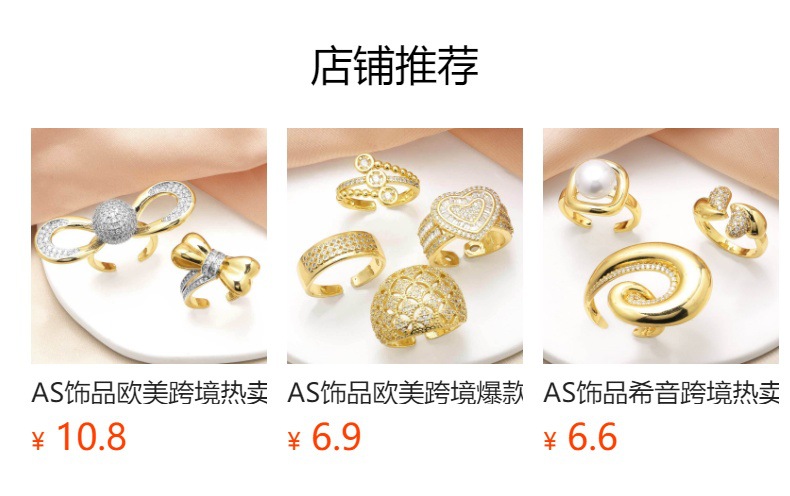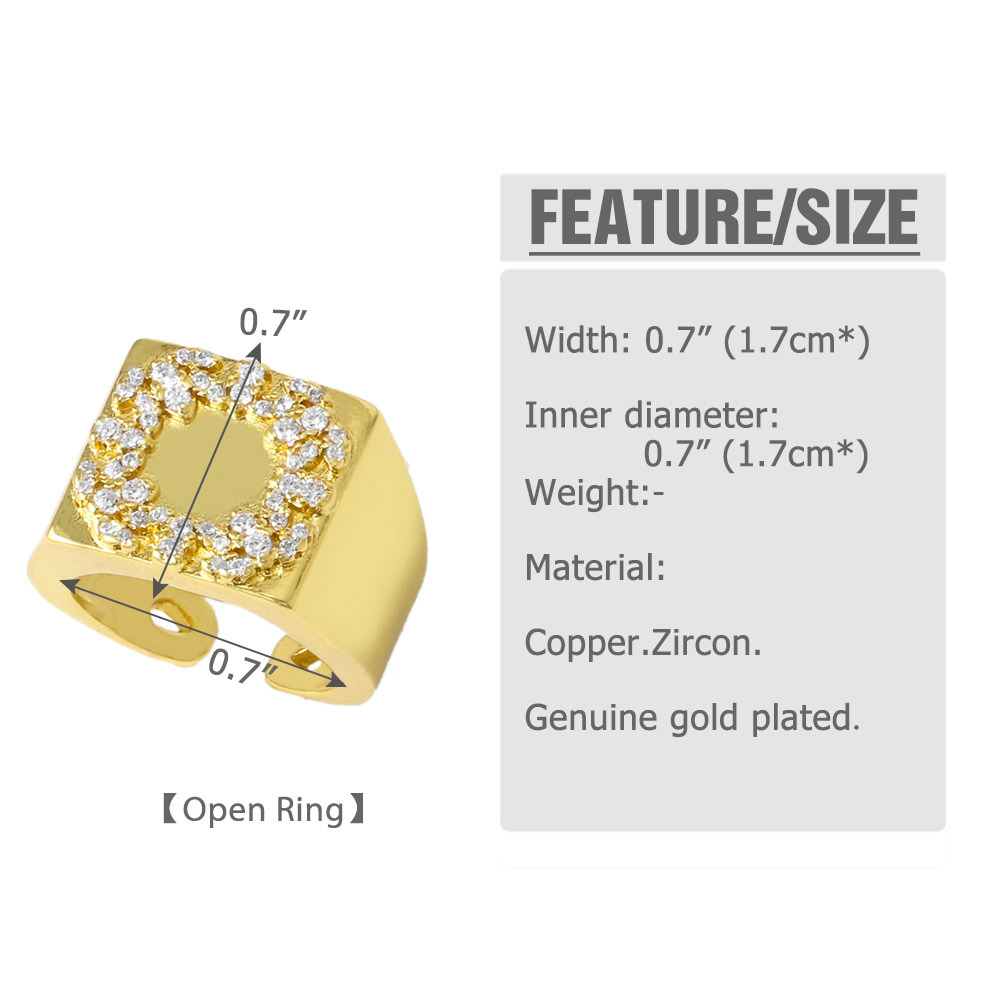 AS jewelry hot selling hollow irregular ring female gold-plated zircon open ring rih55