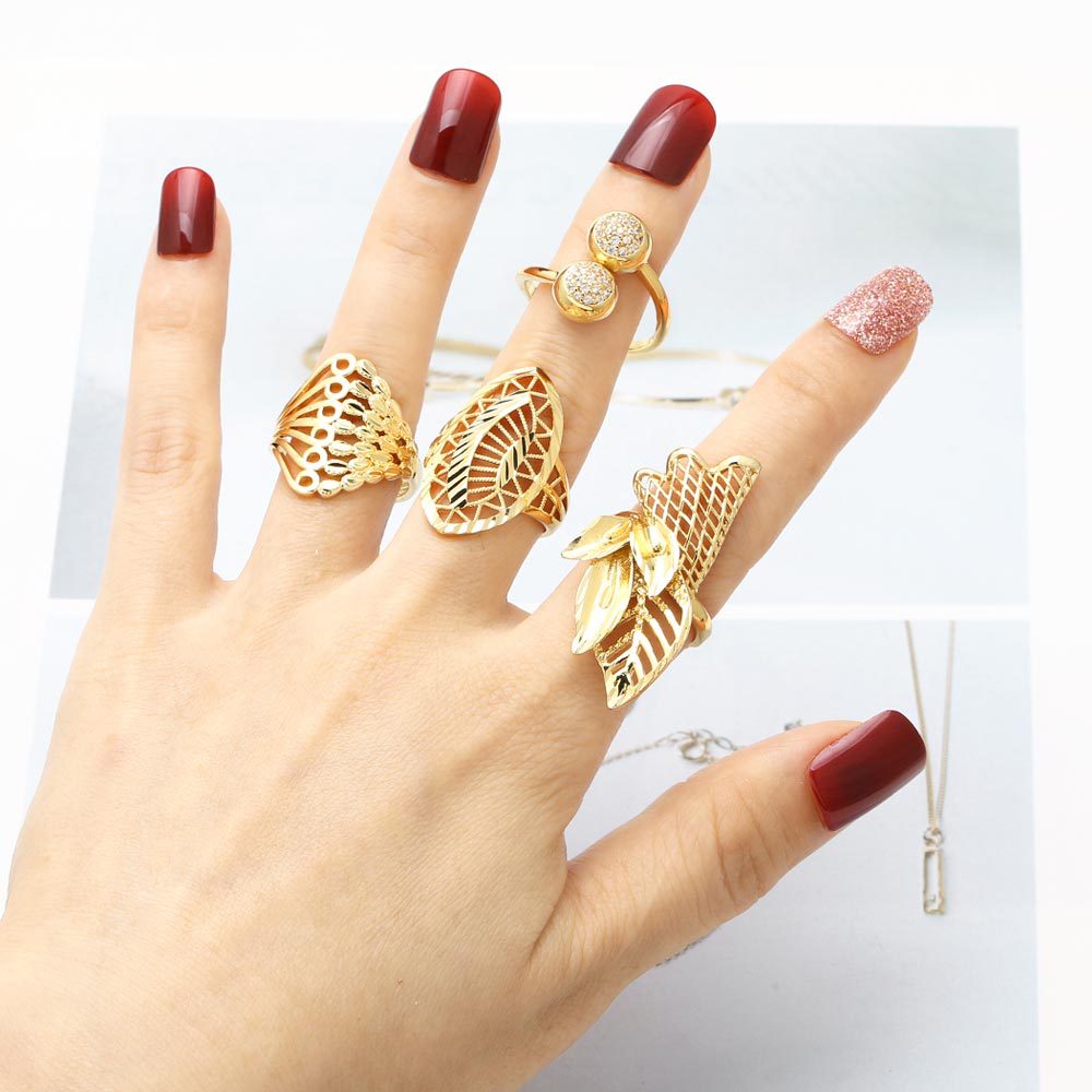 AS jewelry hot selling hollow leaf open ring female copper plated 18k close ring ring rij57