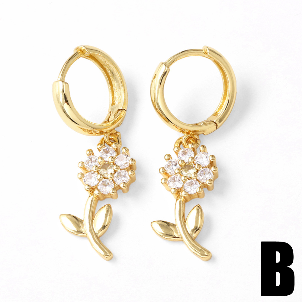 AS jewelry hot selling inlaid zircon heart flower copper plated real gold earrings earrings female err06
