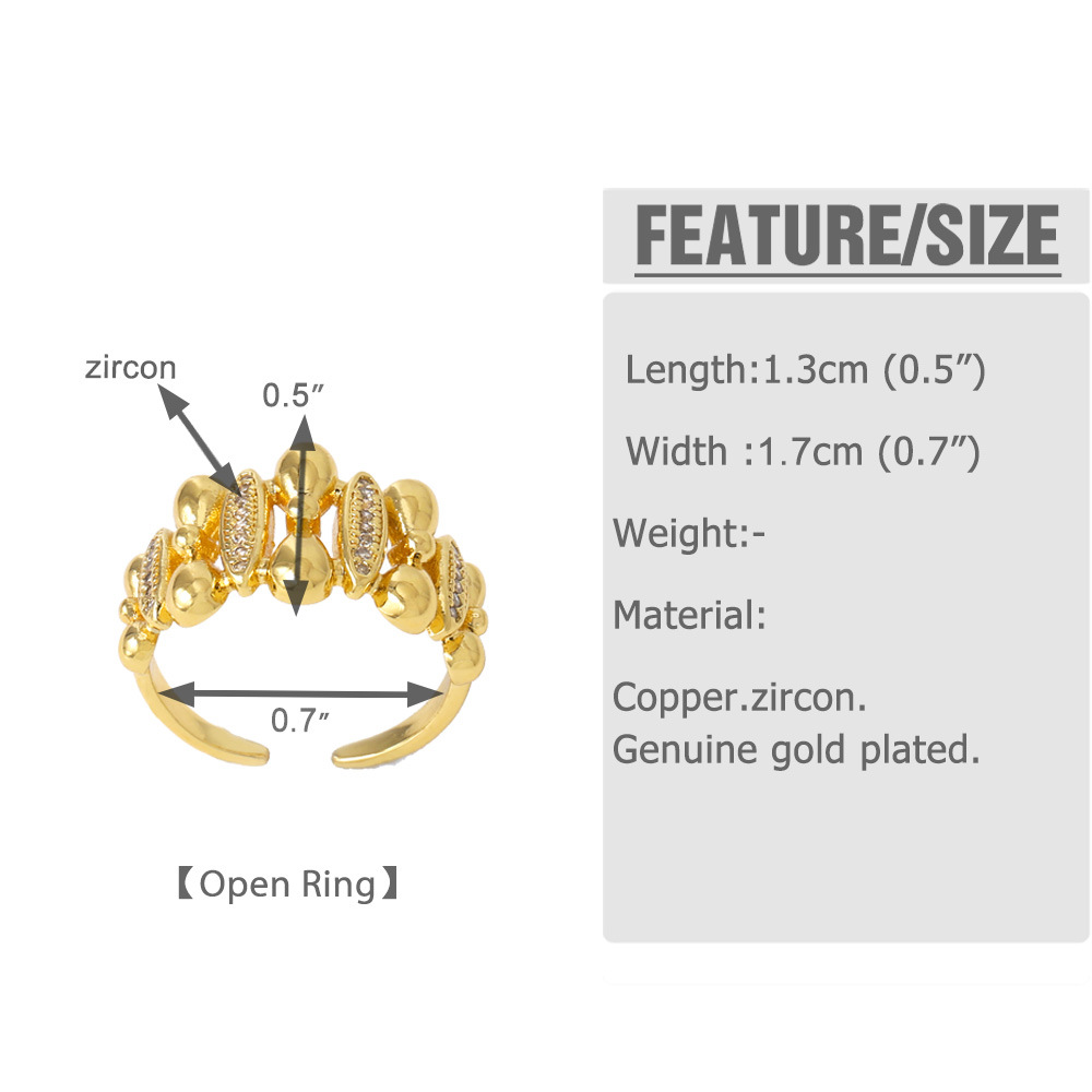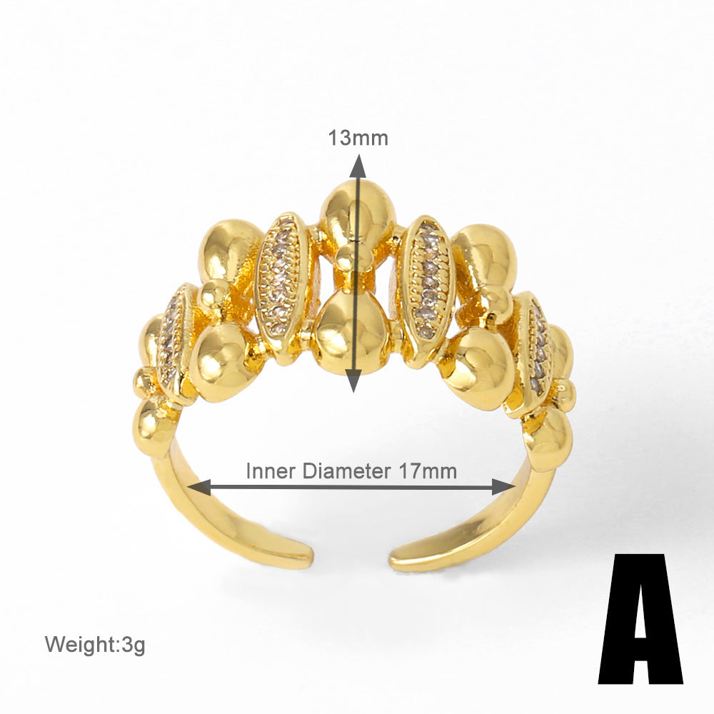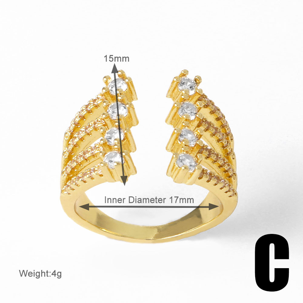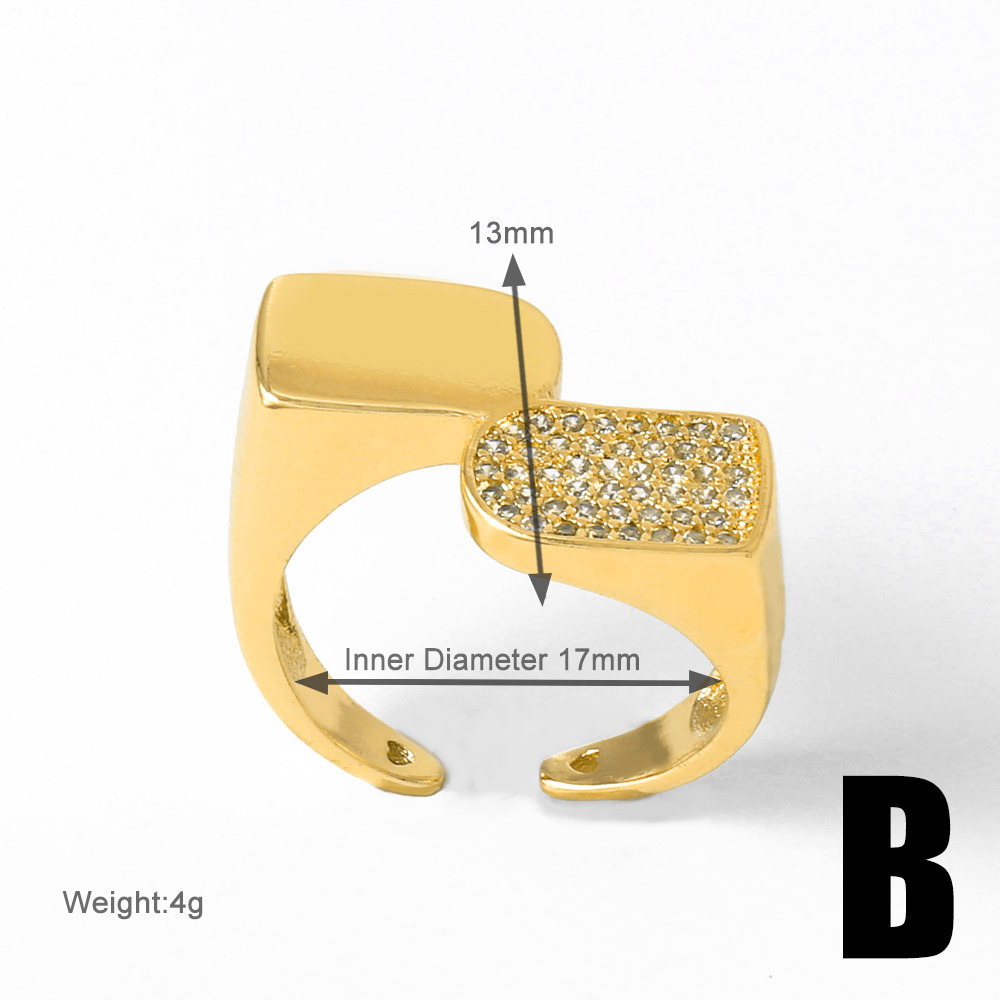 AS jewelry hot selling irregular open ring female copper plated 18k gold inlaid zircon ring rih13