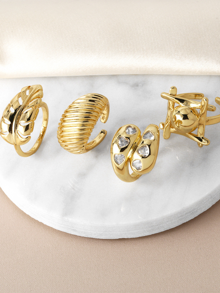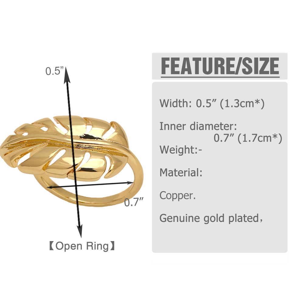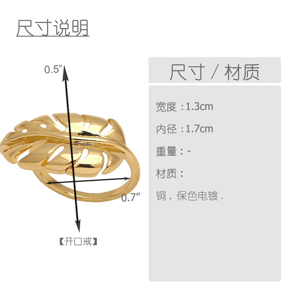 AS jewelry hot selling leaf open ring female gold-plated smooth round adjustable ring rin27