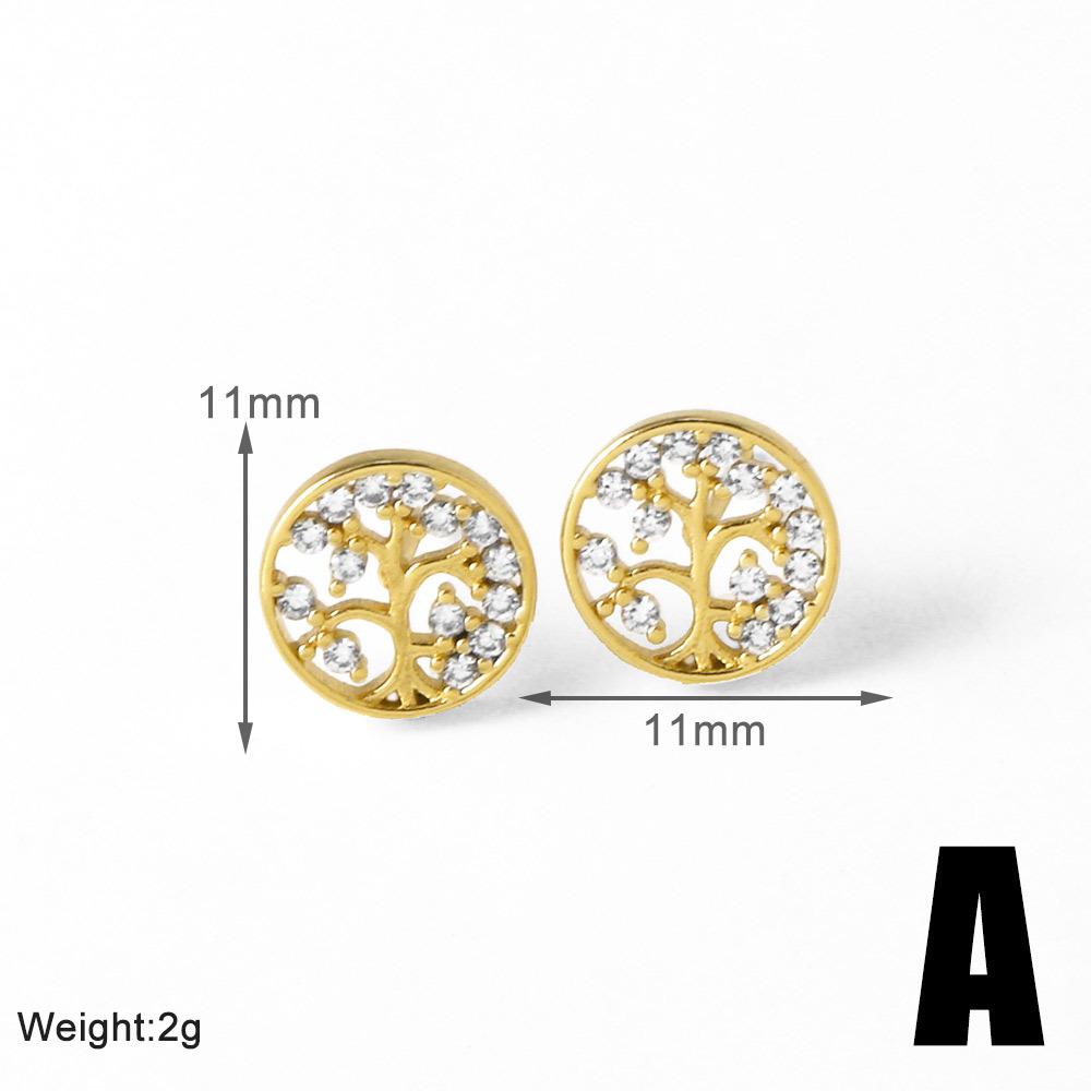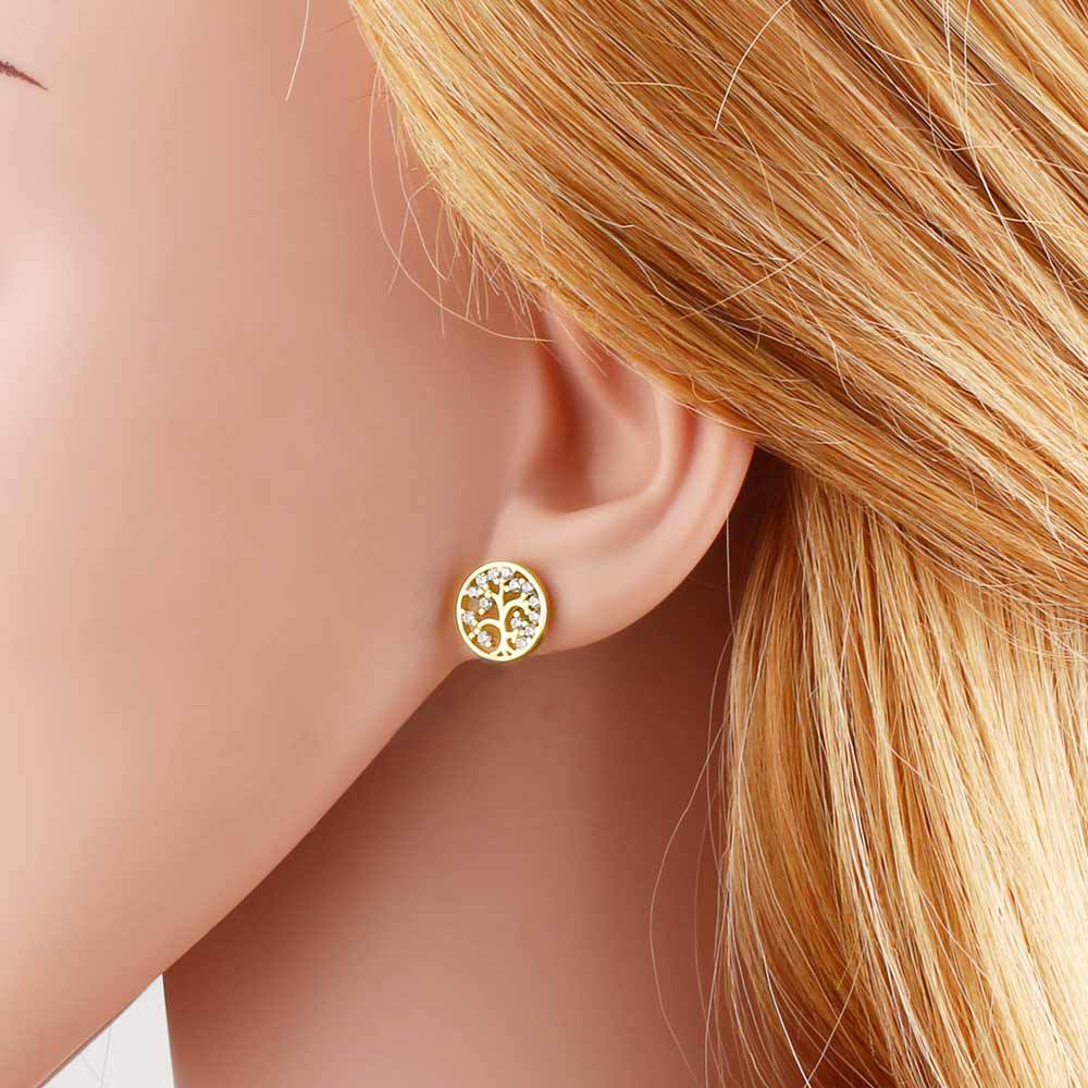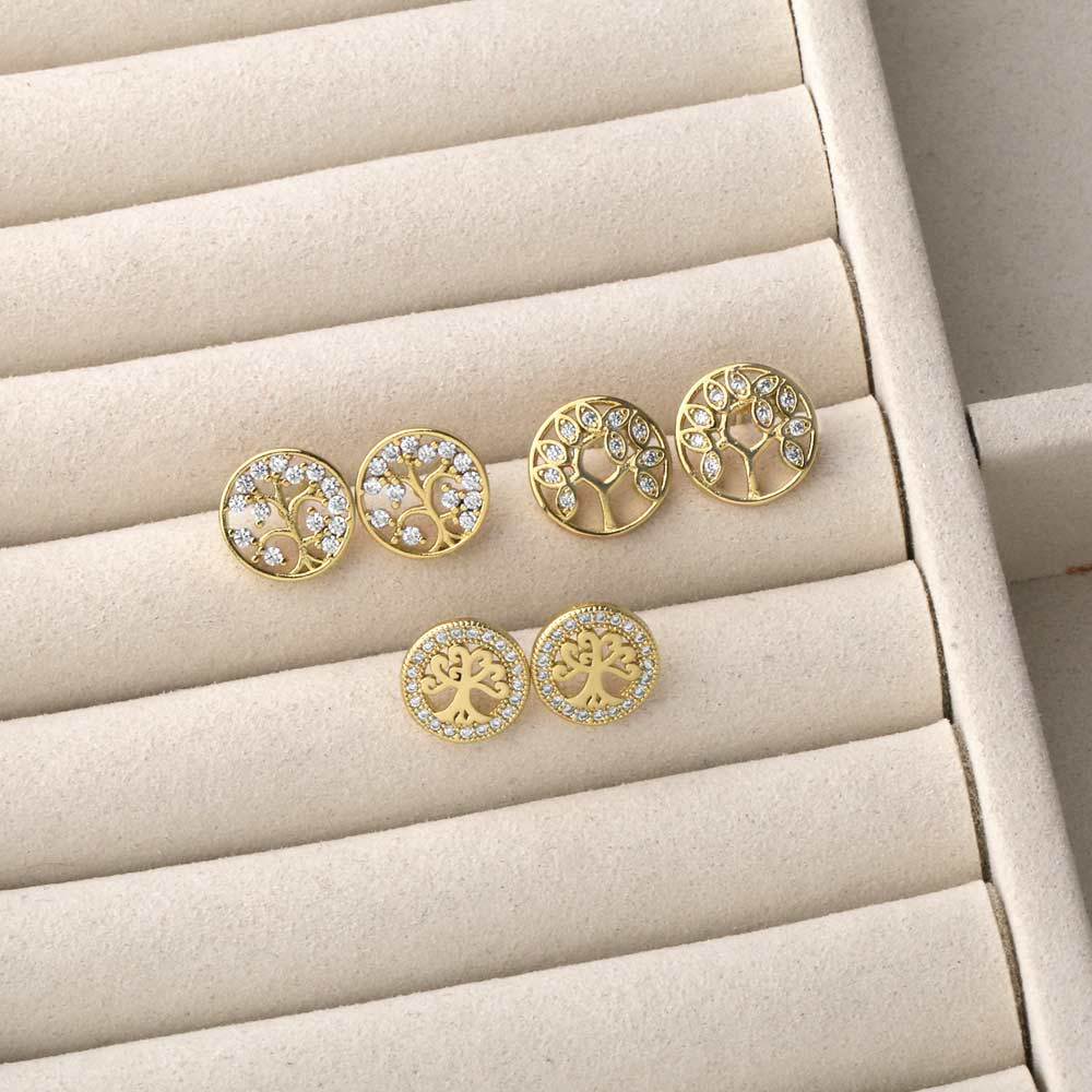 AS jewelry hot selling life tree earrings female copper plated real gold round versatile earrings erw43